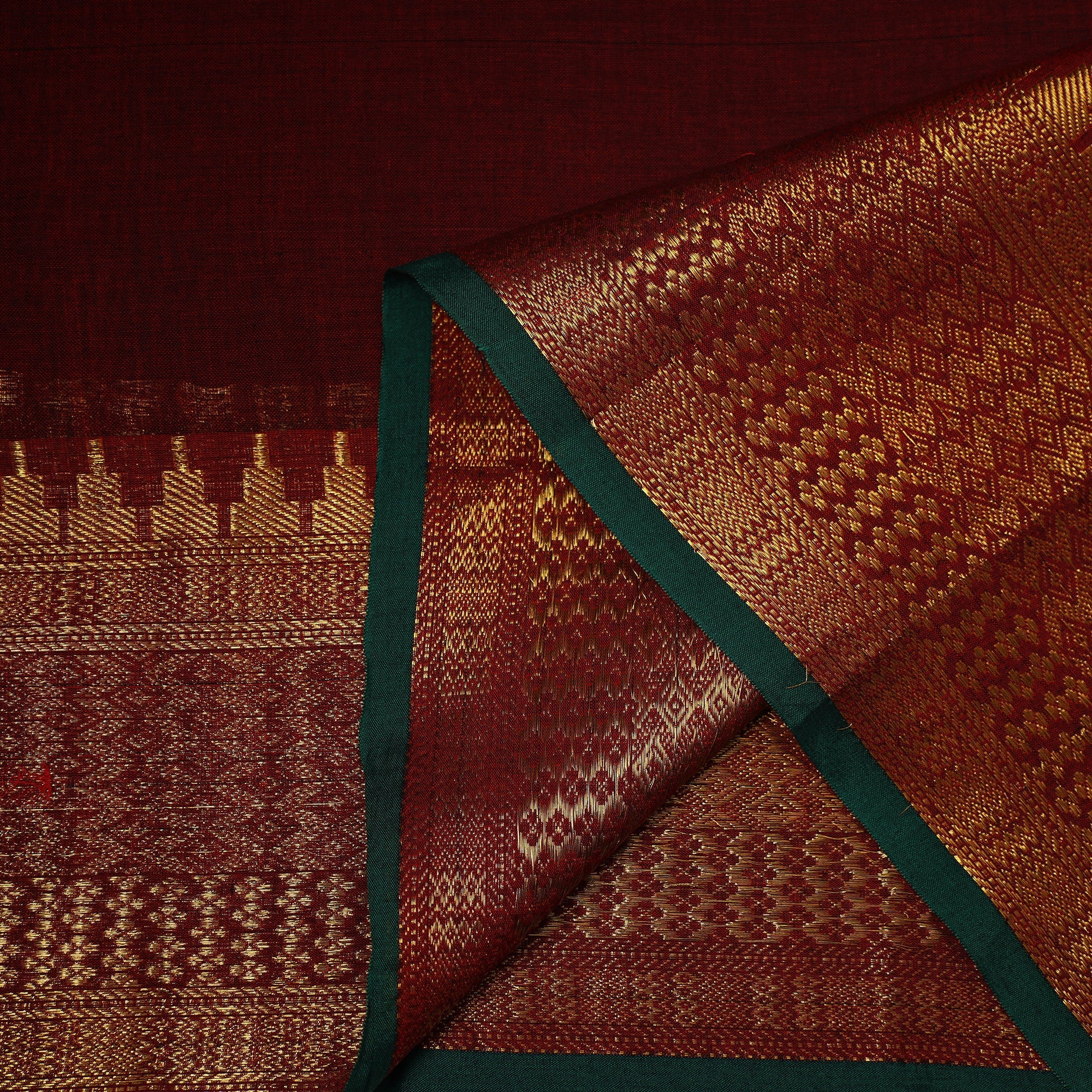 This maroon dharwad cotton fabric from Karnataka features a woven border inspired by traditional patterns. Made using machine processes, it offers a smooth finish and reliable quality. Ideal for making elegant outfits, home decor accents, or creative craft projects.