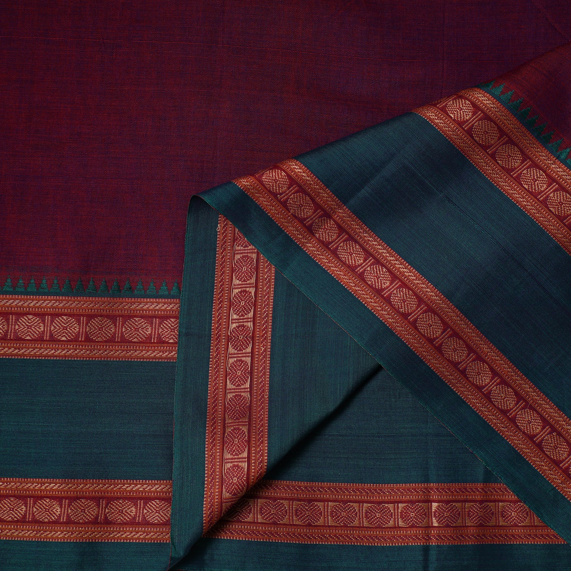 This maroon dharwad cotton fabric from Karnataka features a woven border inspired by traditional patterns. Made using machine processes, it offers a smooth finish and reliable quality. Ideal for making elegant outfits, home decor accents, or creative craft projects.