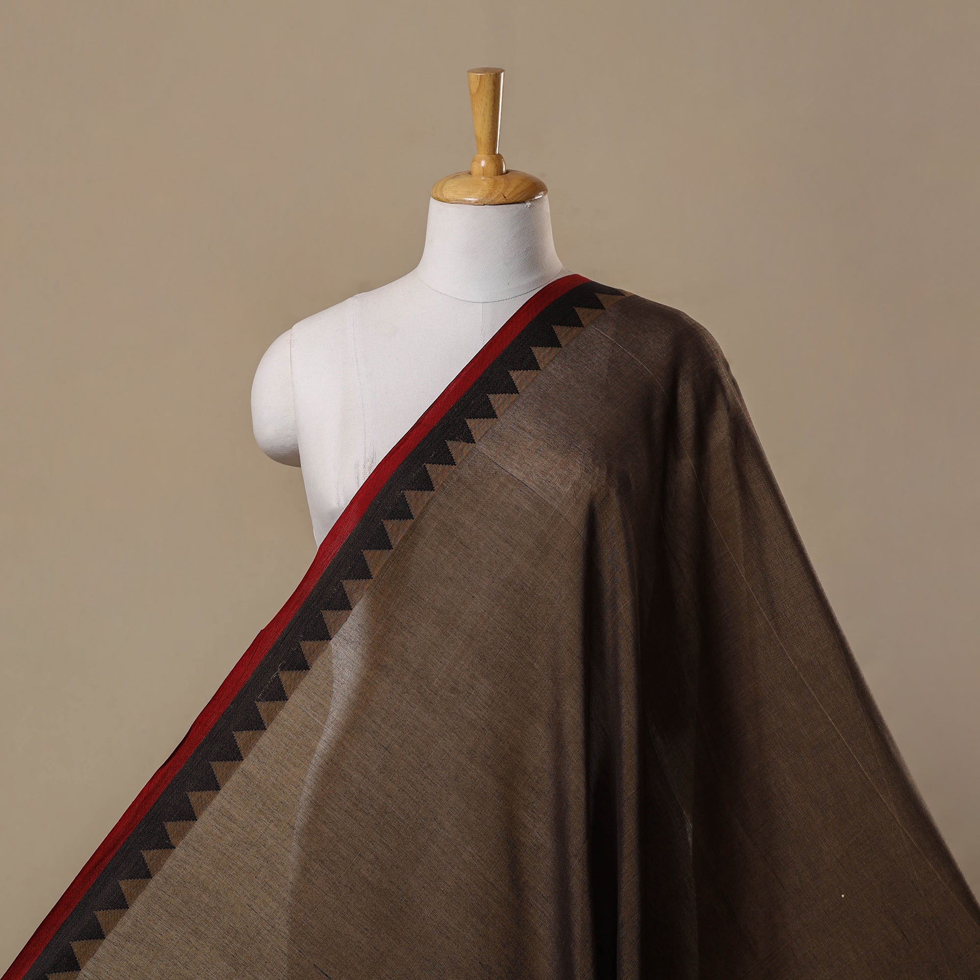 Brown dharwad cotton fabric from Karnataka is known for its fine texture and border work. The borders feature intricate motifs that reflect the region’s style. This fabric is machine-made, with no handmade process involved. It is suitable for stitching kurtas, dresses, cushion covers and other home decor accents.