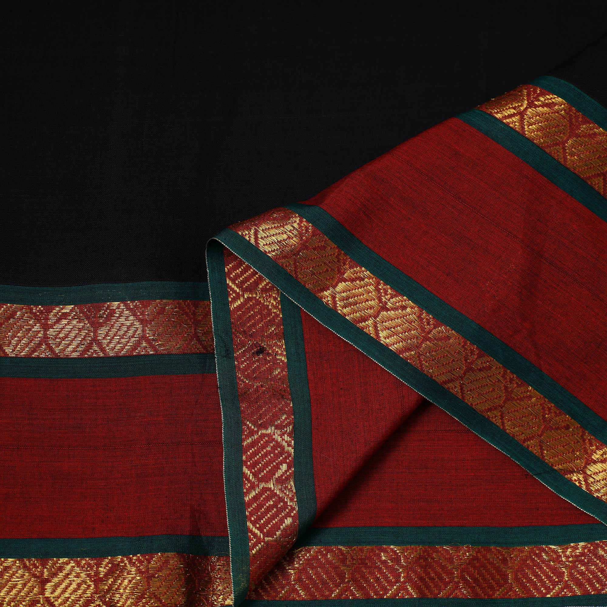 Black - 3pc Cotton Unstitched Dharwad Dress Material with Border 16