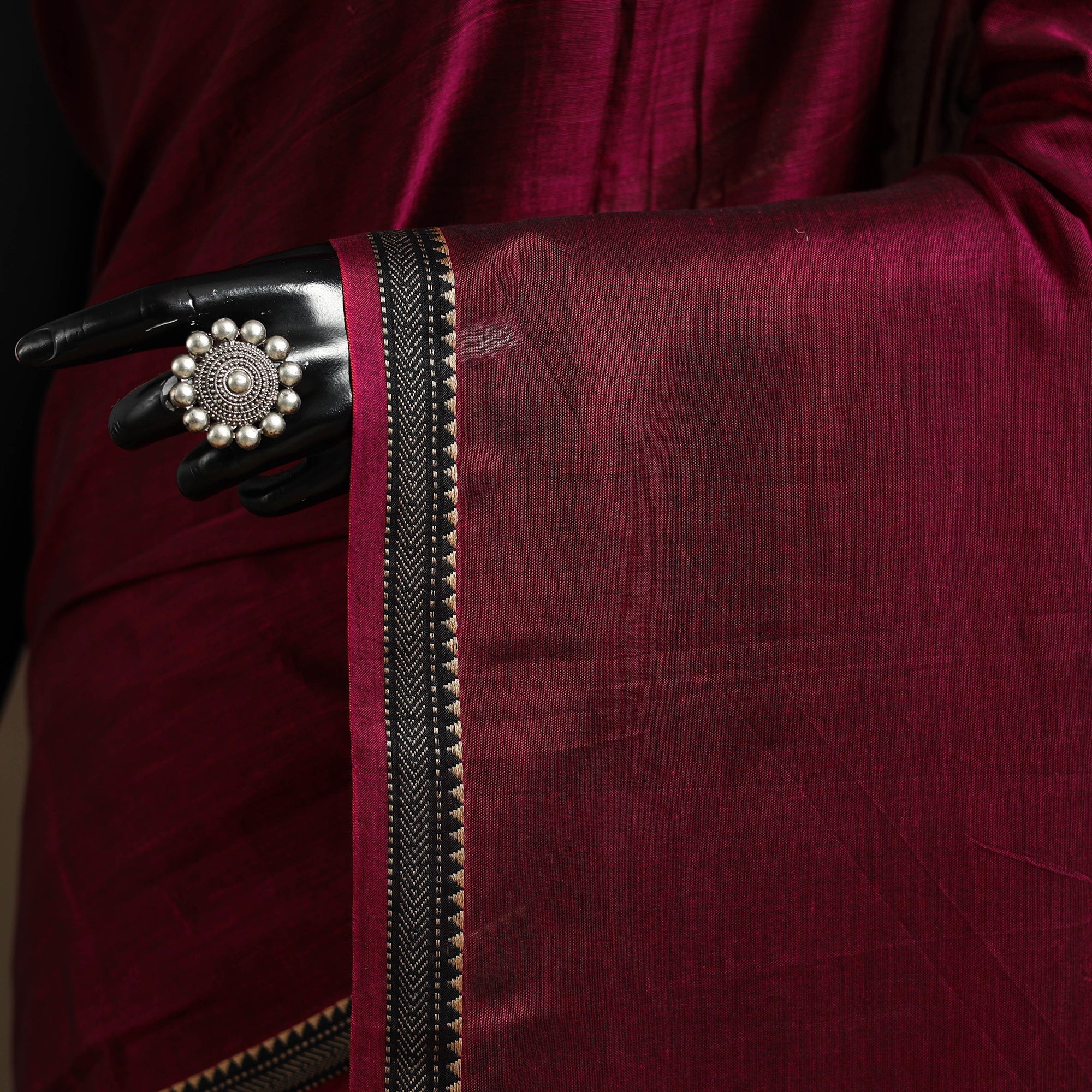 Embrace the elegance of Karnataka with our purple dharwad cotton saree. It features a beautifully woven border, carefully made by the skilled weavers of Dharwad. The border has fine motifs and patterns that reflect the weaving style of the region. These simple yet graceful details make the saree perfect for both formal occasions and festive celebrations.
