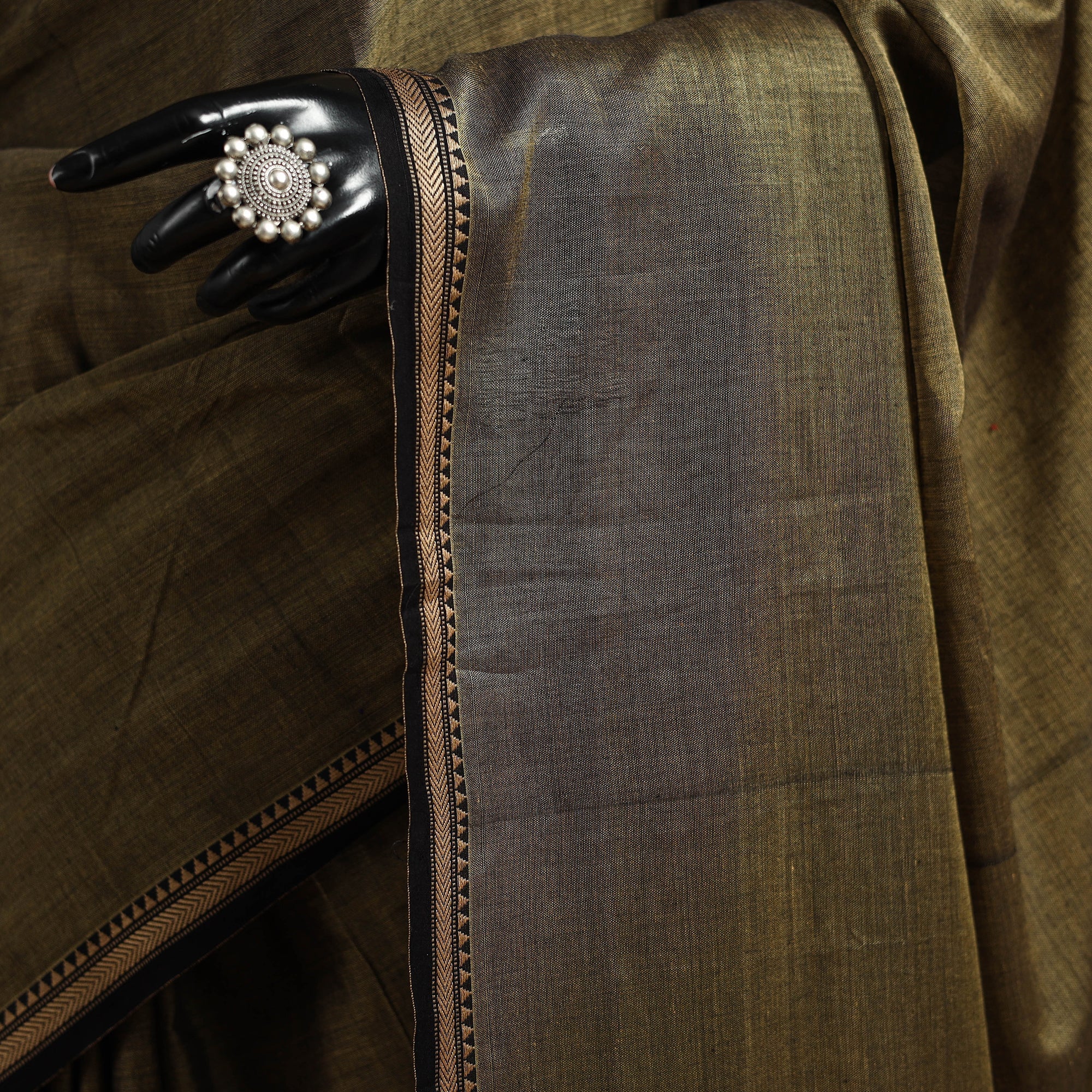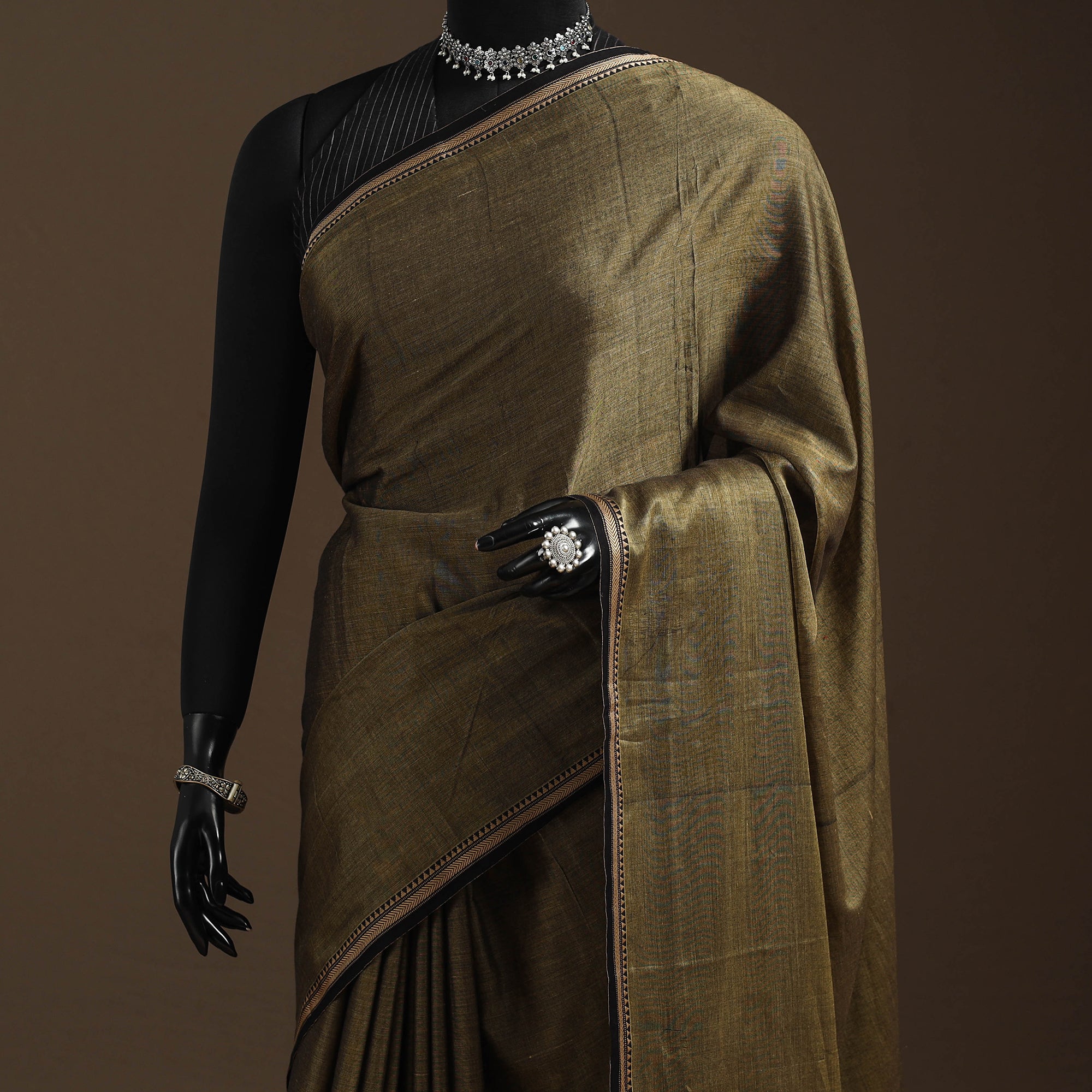 Embrace the elegance of Karnataka with our green dharwad cotton saree. It features a beautifully woven border, carefully made by the skilled weavers of Dharwad. The border has fine motifs and patterns that reflect the weaving style of the region. These simple yet graceful details make the saree perfect for both formal occasions and festive celebrations.