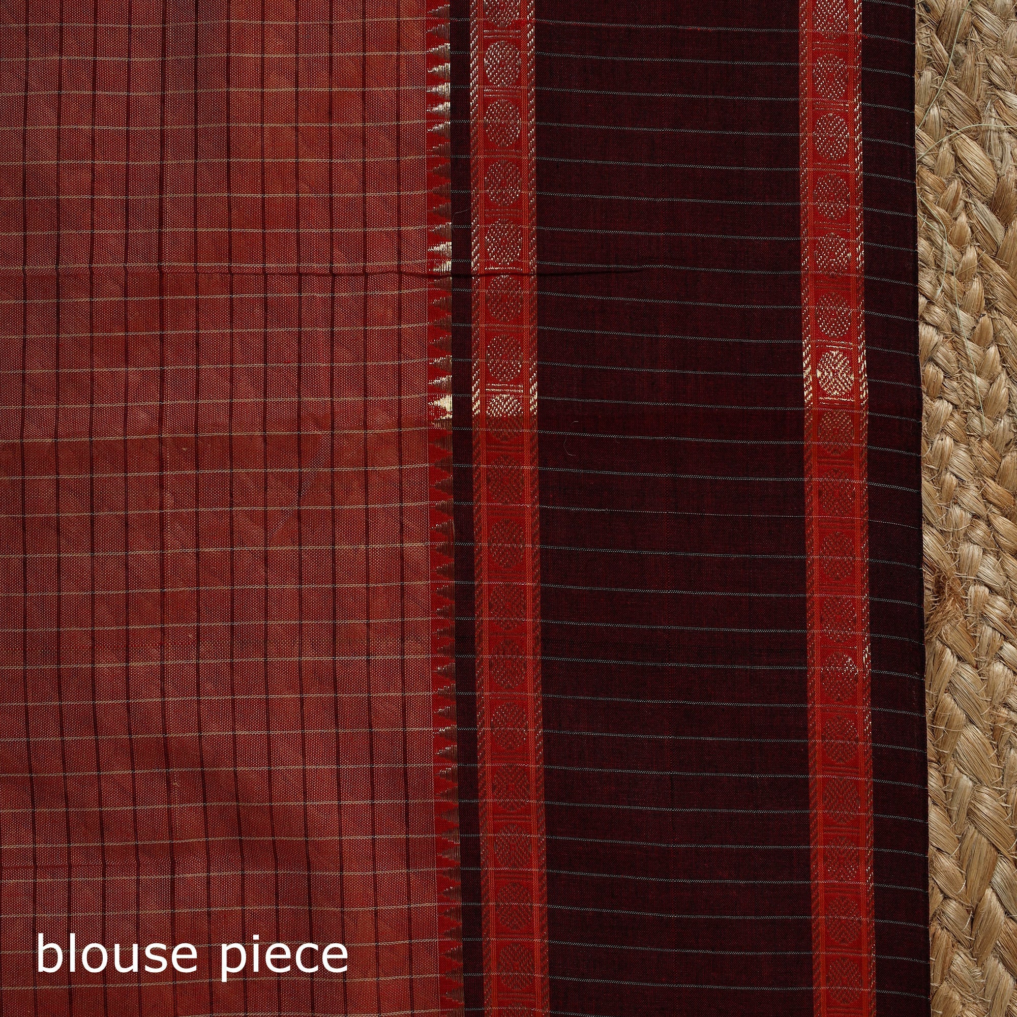 Red dharwad cotton saree from Karnataka is woven using a traditional method known for its firm texture and intricate border work. The border features fine motifs and patterns that reflect the region’s style. These simple yet graceful details make the saree perfect for both formal occasions and festive celebrations.