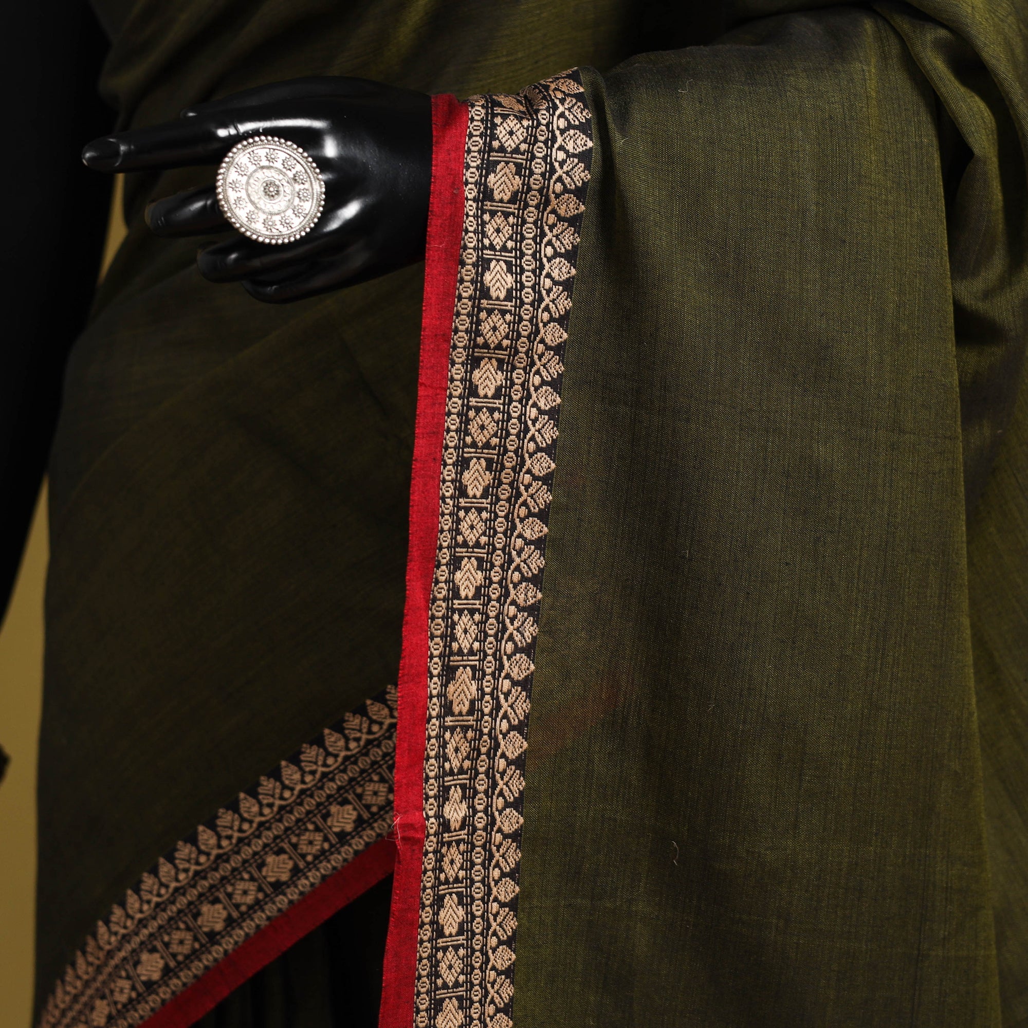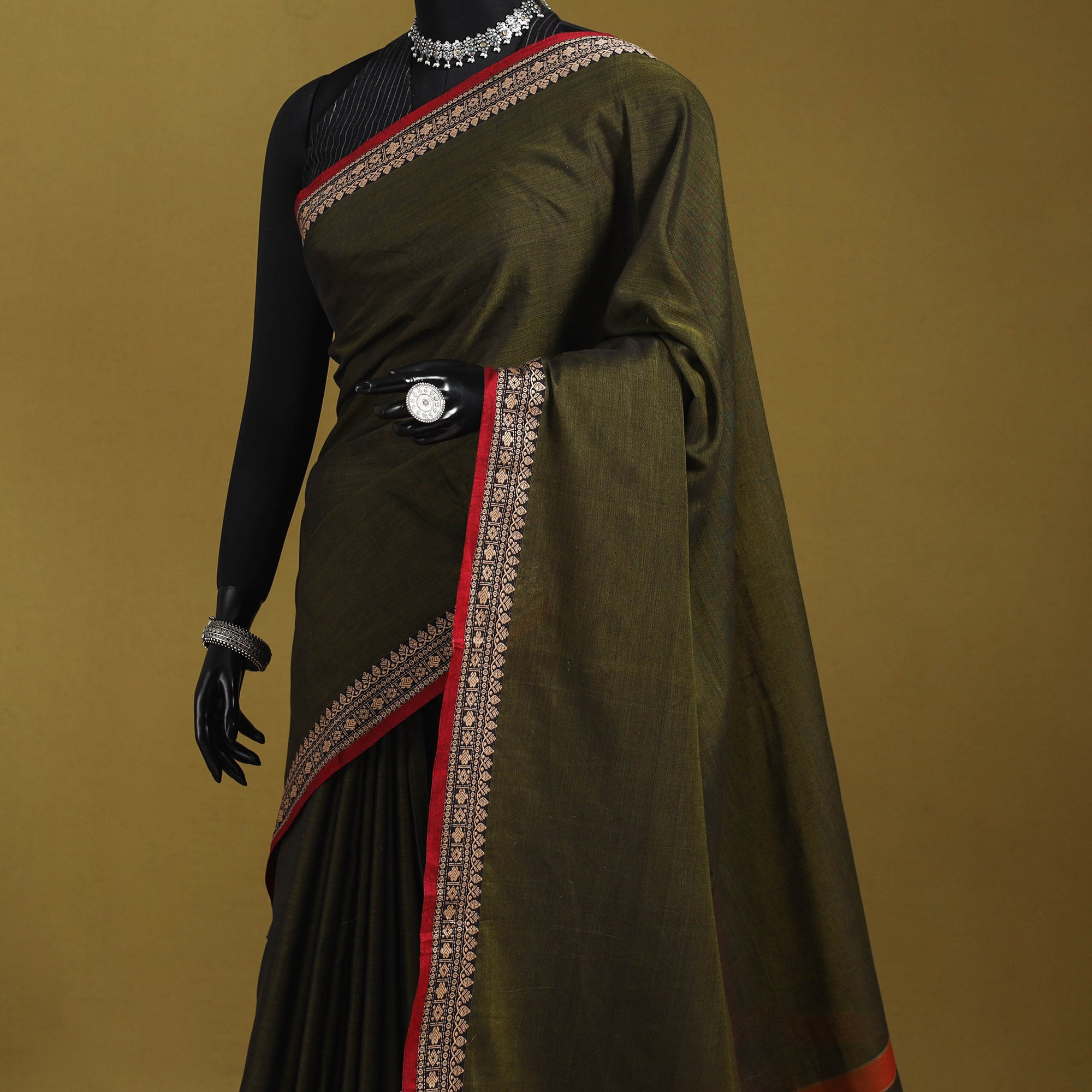 Embrace the traditional elegance of Karnataka with our dharwad cotton saree. This saree features a captivating woven border, meticulously crafted by the skilled weavers of Dharwad. The border showcases intricate motifs and patterns that reflect the rich cultural heritage of Karnataka. These exquisite details bring a sense of grace and sophistication, making the saree ideal for both formal occasions and festive celebrations.