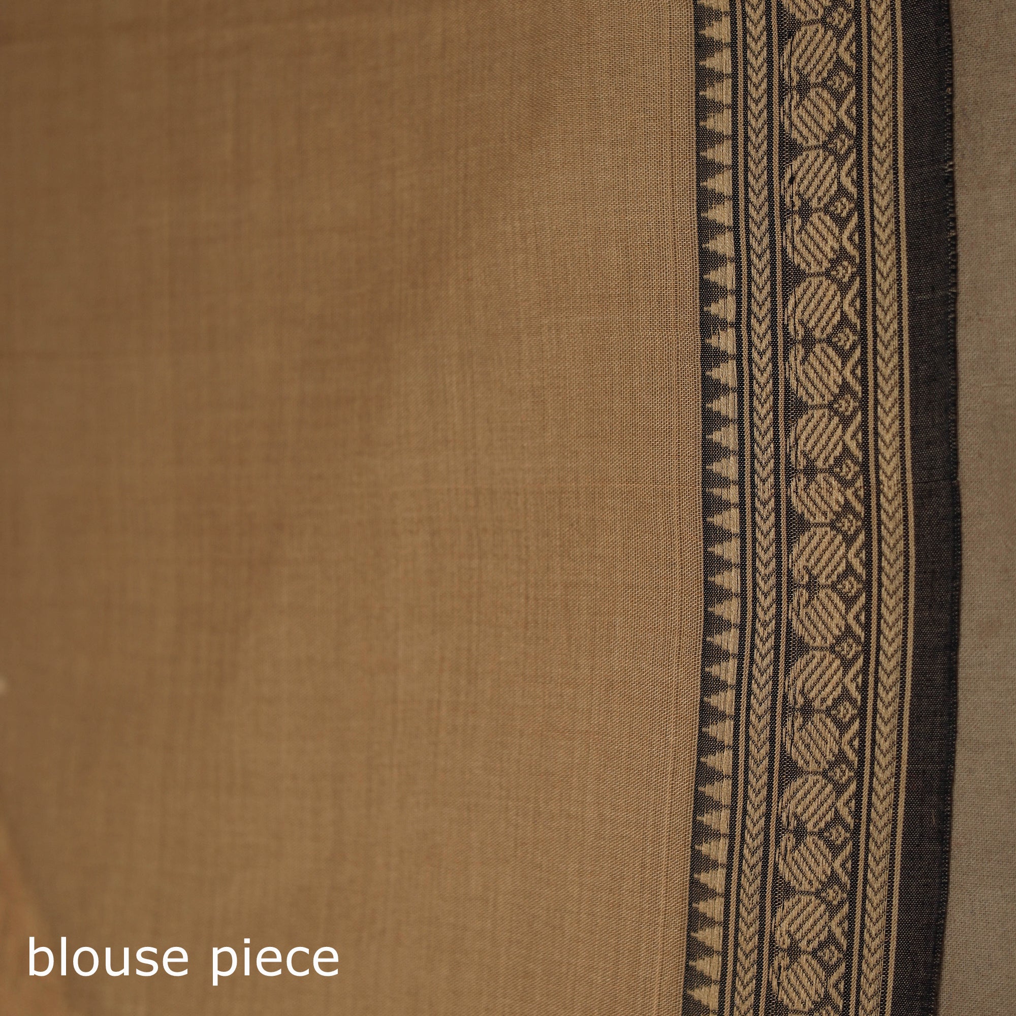 Embrace the elegance of Karnataka with our beige dharwad cotton saree. It features a beautifully woven border, carefully made by the skilled weavers of Dharwad. The border has fine motifs and patterns that reflect the weaving style of the region. These simple yet graceful details make the saree perfect for both formal occasions and festive celebrations.