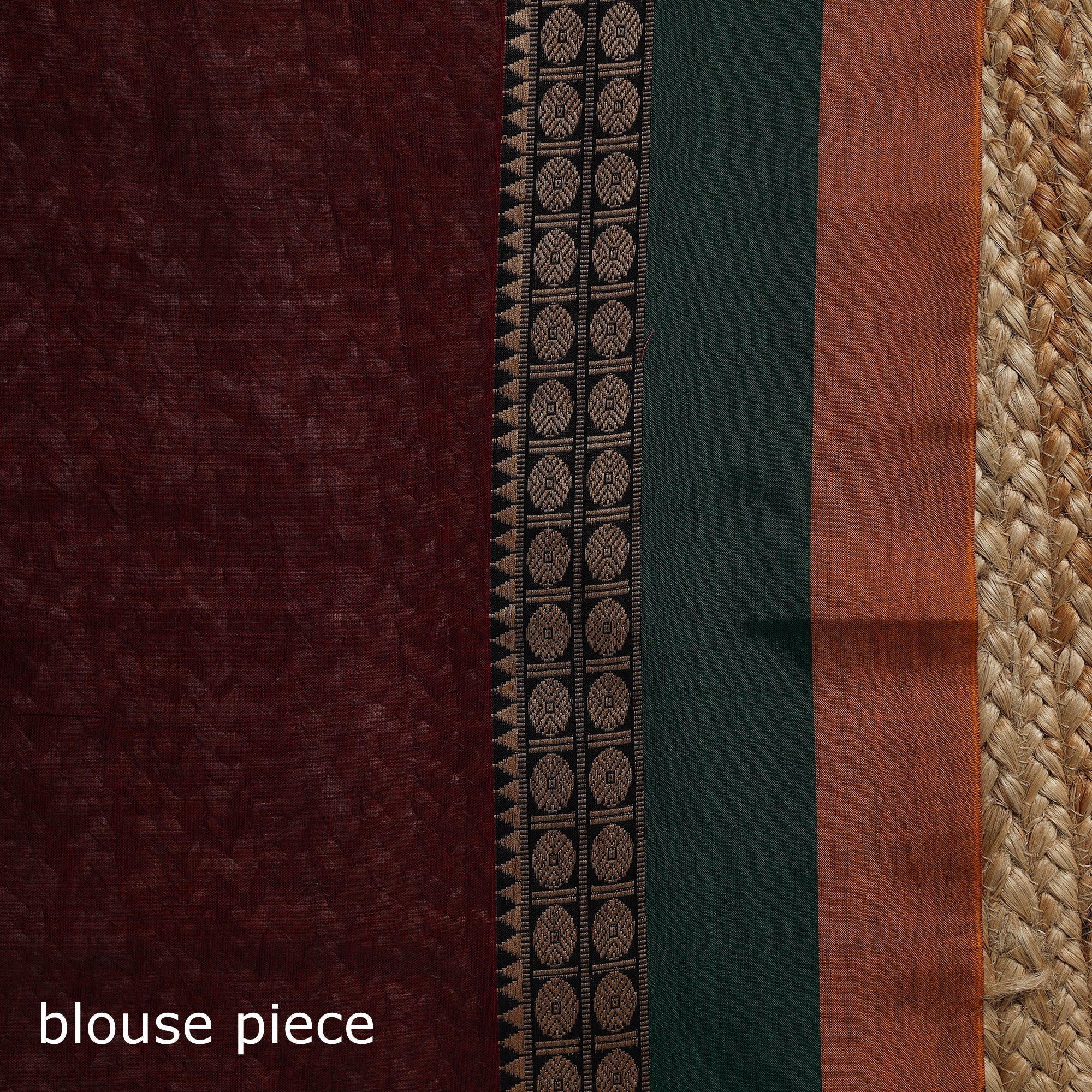 Maroon dharwad cotton saree from Karnataka is woven using a traditional method known for its firm texture and intricate border work. The border features fine motifs and patterns that reflect the region’s style. These simple yet graceful details make the saree perfect for both formal occasions and festive celebrations.