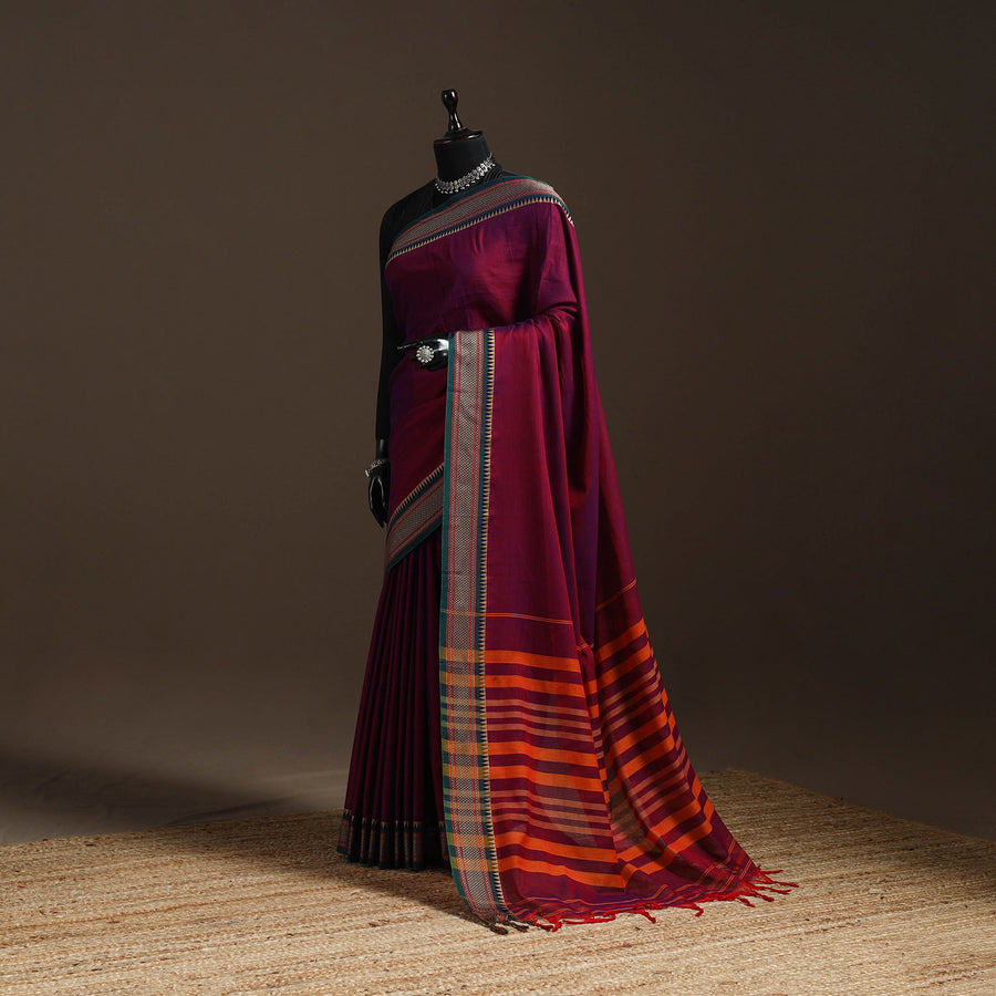 Dharwad cotton saree from Karnataka is woven using a traditional method known for its firm texture and intricate border work. The border features fine motifs and patterns that reflect the region’s style. These simple yet graceful details make the saree perfect for both formal occasions and festive celebrations.