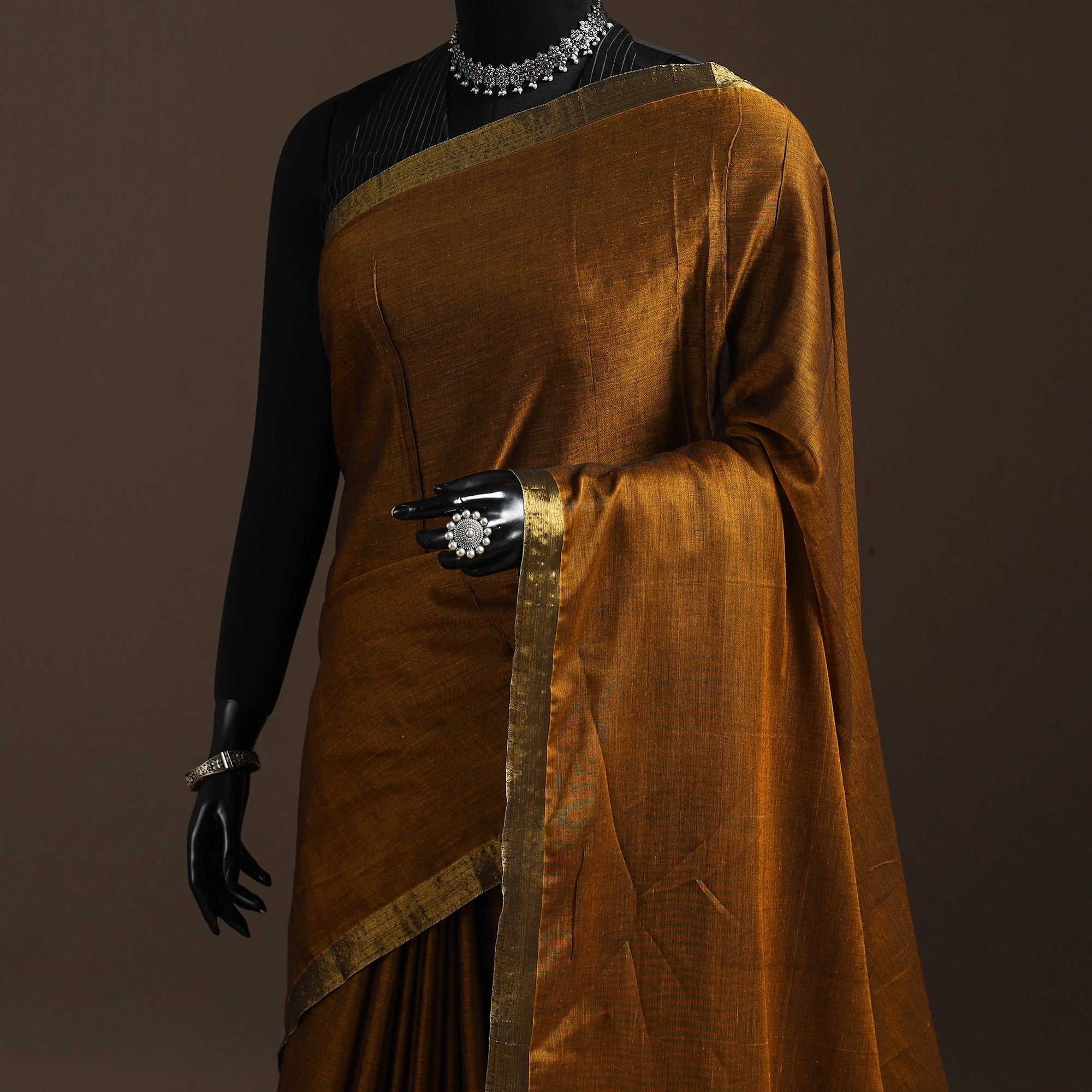 Dharwad cotton saree from Karnataka is woven using a traditional method known for its firm texture and intricate border work. The border features fine motifs and patterns that reflect the region’s style. These simple yet graceful details make the saree perfect for both formal occasions and festive celebrations.