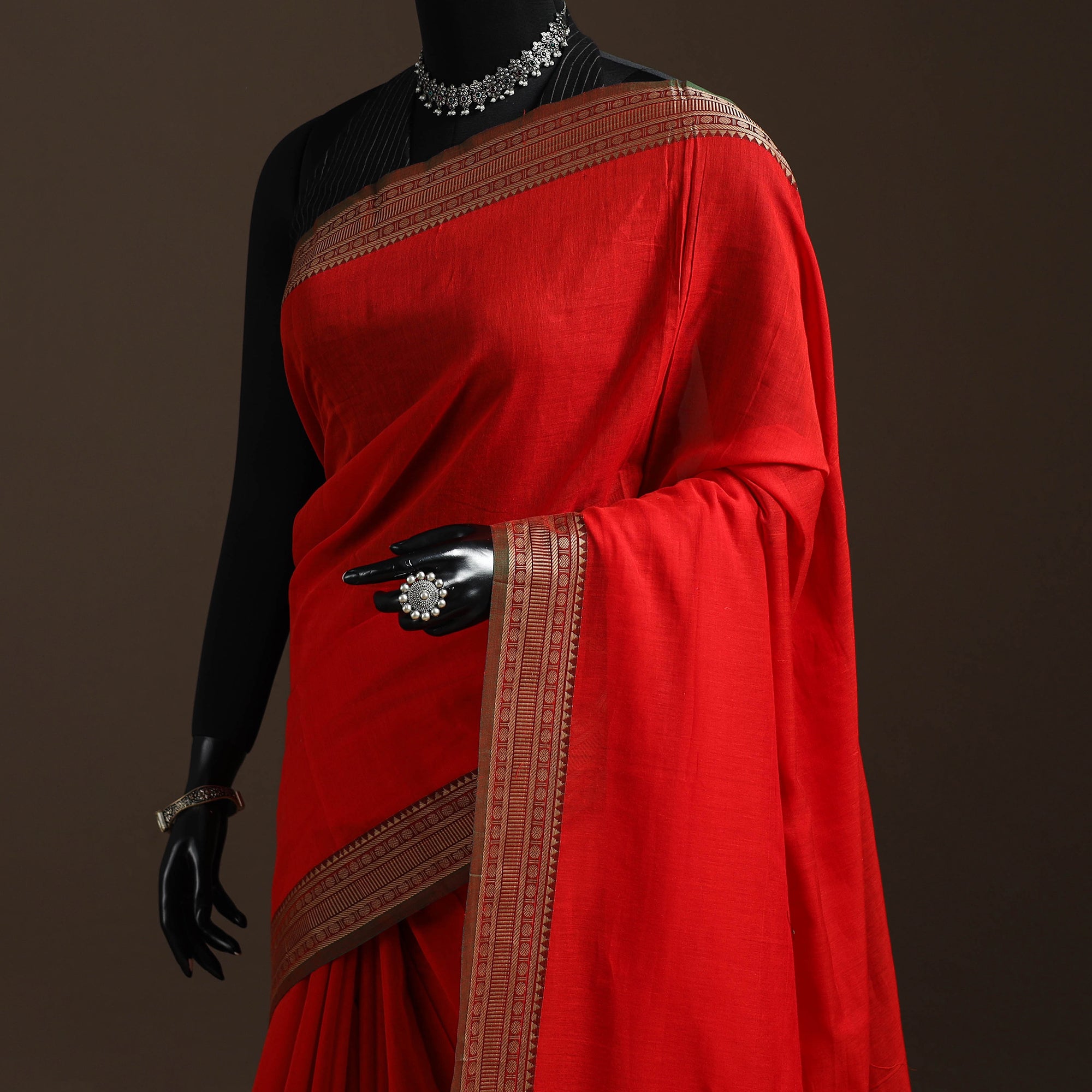 Dharwad cotton saree from Karnataka is woven using a traditional method known for its firm texture and intricate border work. The border features fine motifs and patterns that reflect the region’s style. These simple yet graceful details make the saree perfect for both formal occasions and festive celebrations.