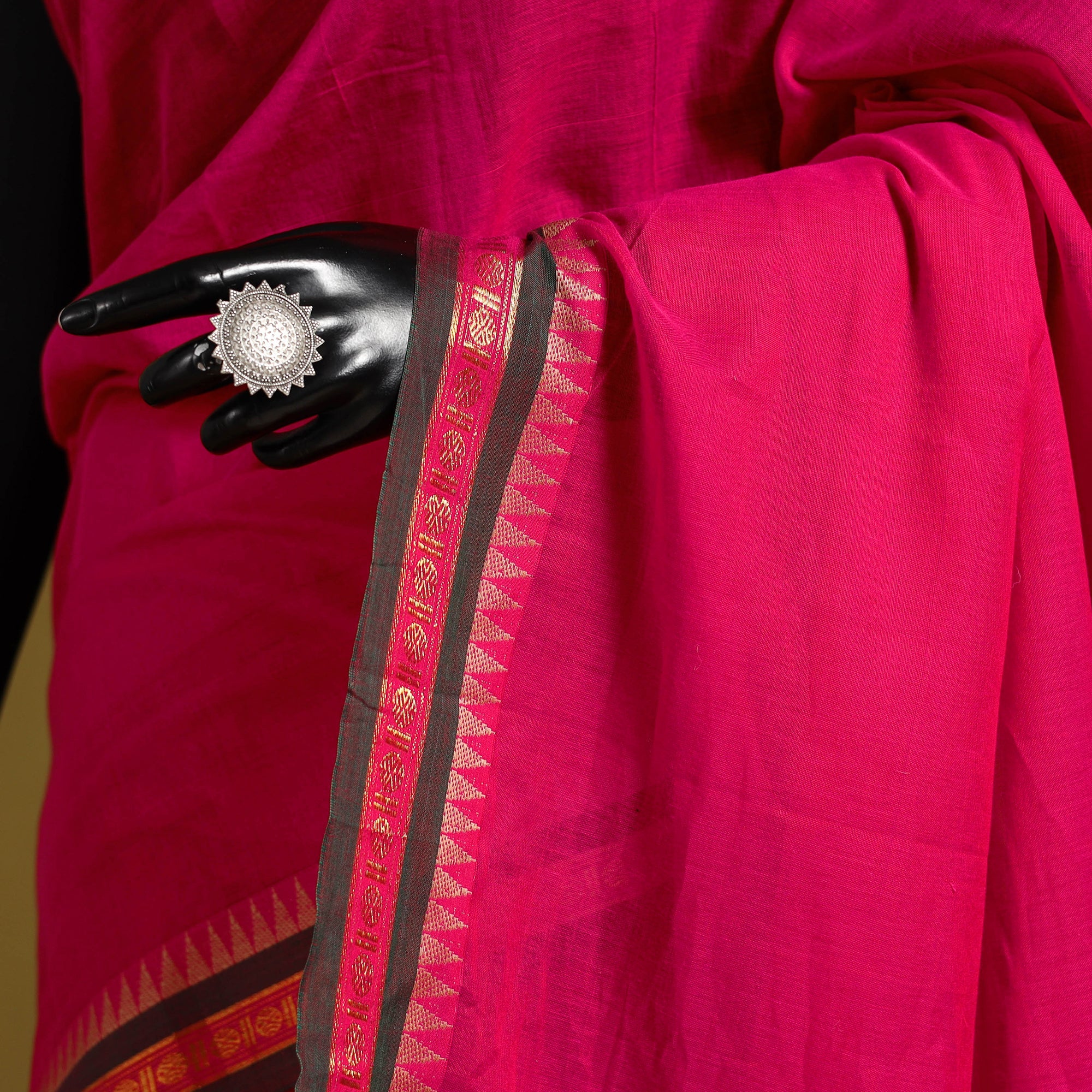 A real silk saree will have slight variations in texture uniformity, which are quite noticeable.