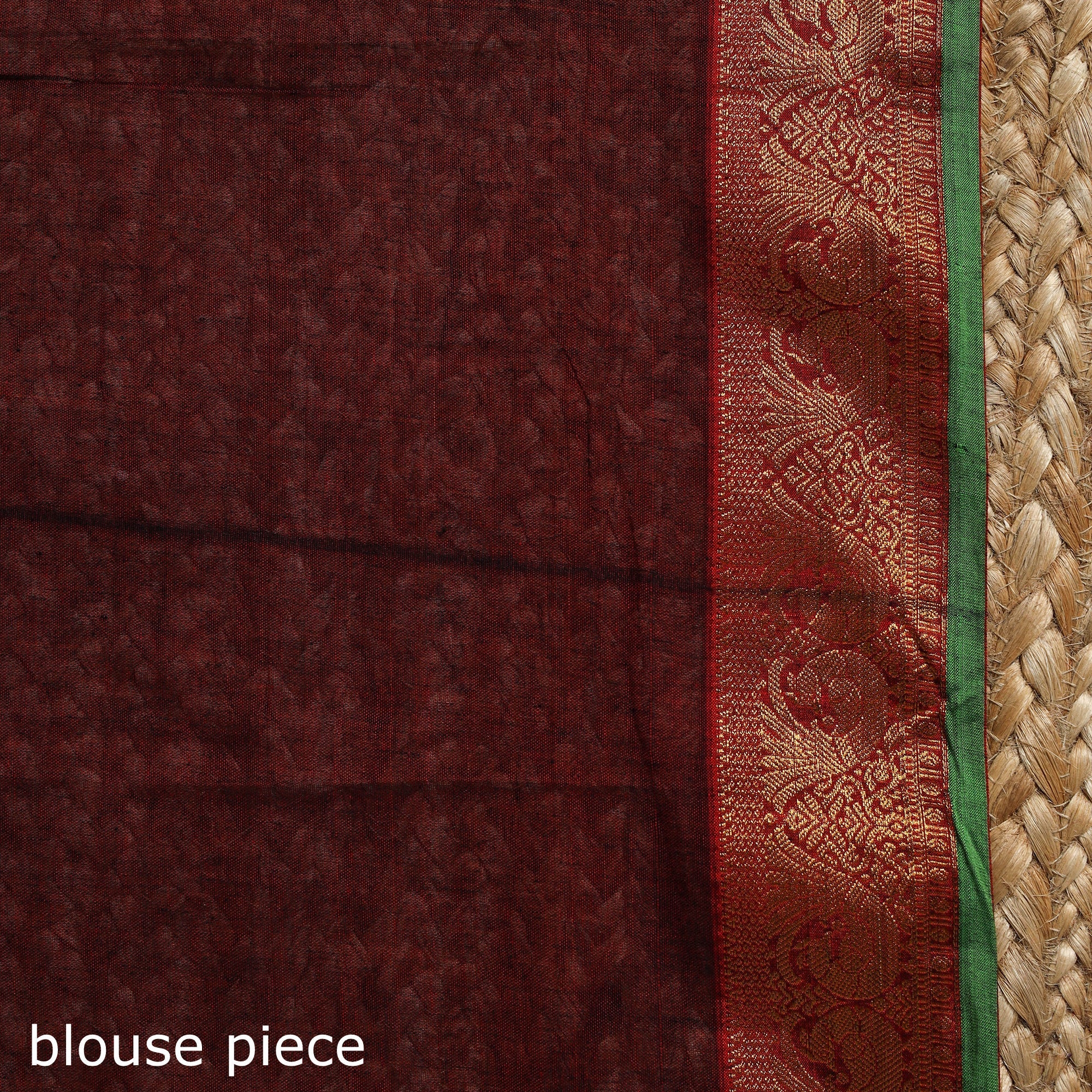 Maroon dharwad cotton saree from Karnataka is woven using a traditional method known for its firm texture and intricate border work. The border features fine motifs and patterns that reflect the region’s style. These simple yet graceful details make the saree perfect for both formal occasions and festive celebrations.