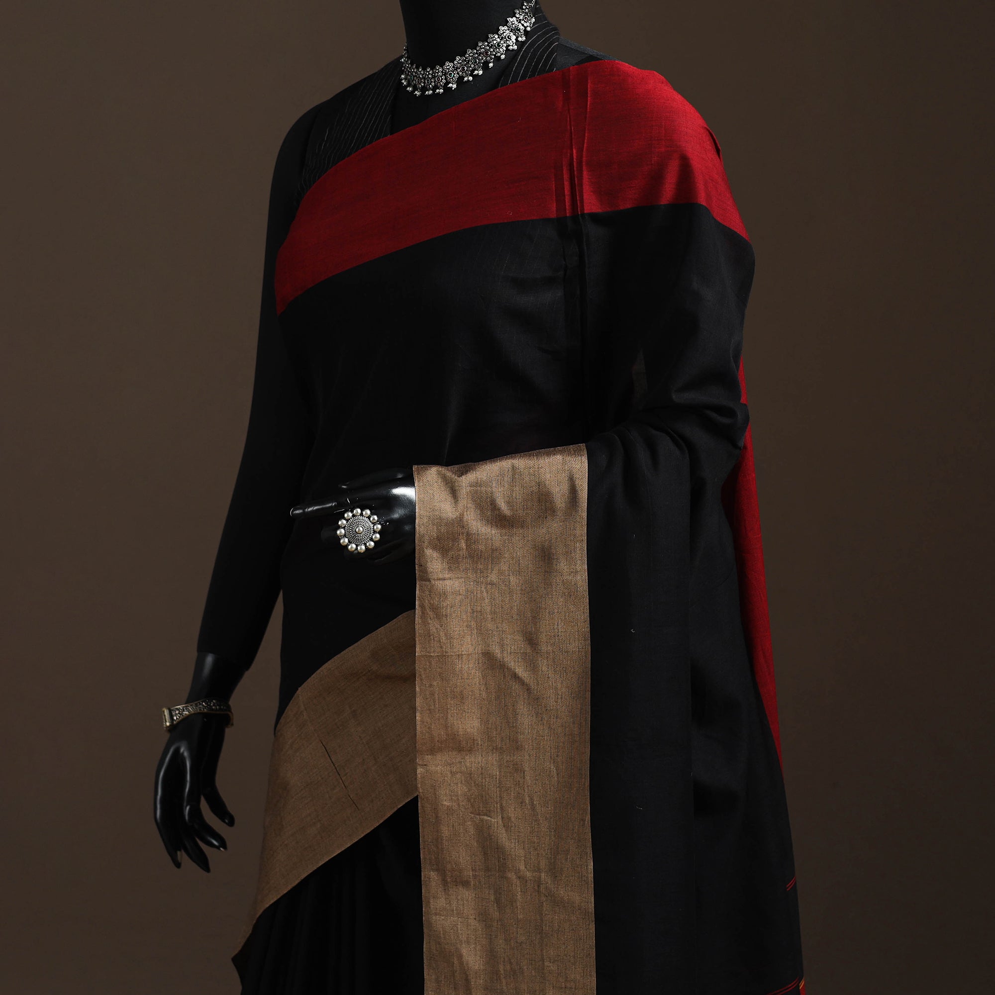 Black - 3pc Cotton Unstitched Dharwad Dress Material with Border 16