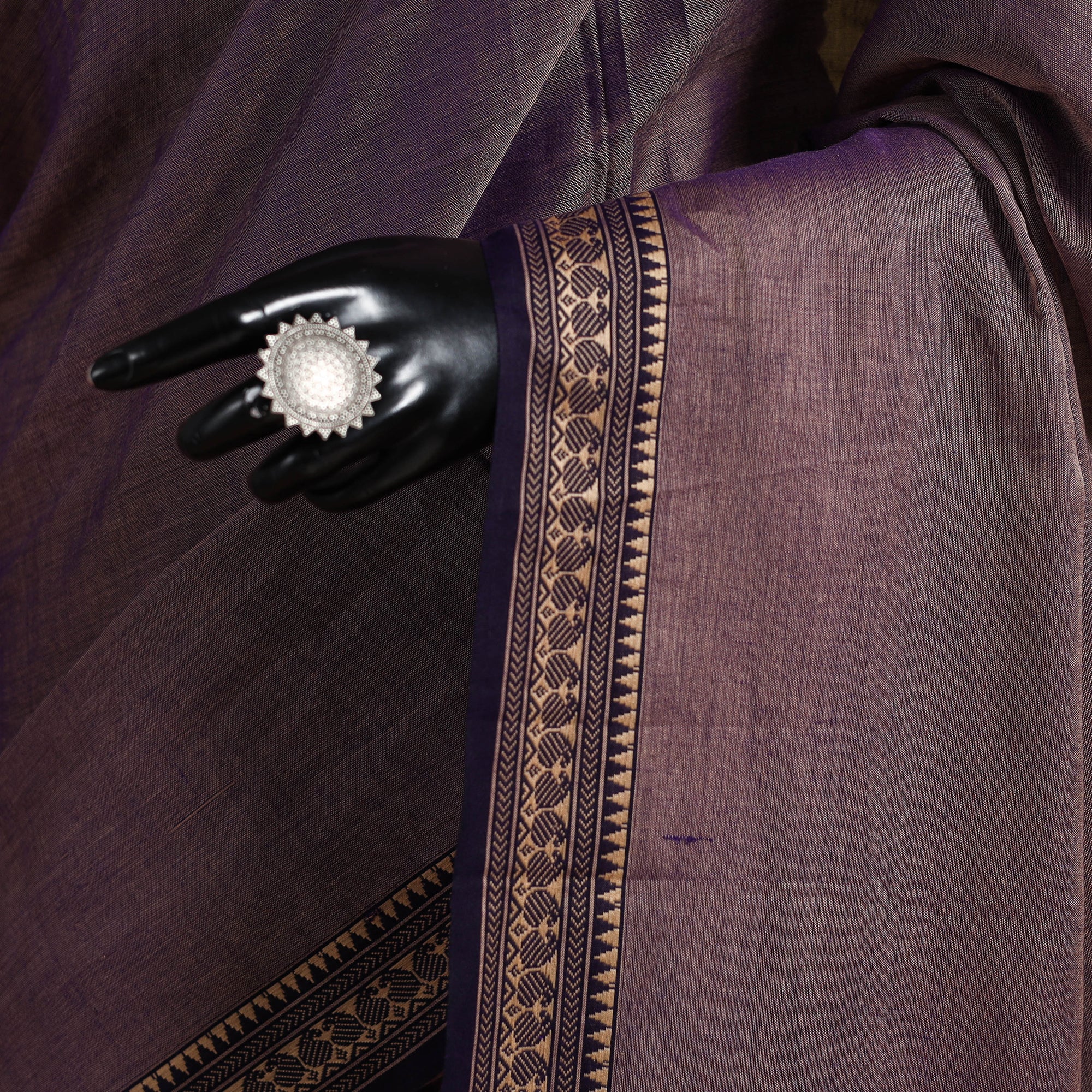 Embrace the traditional elegance of Karnataka with our purple dharwad cotton saree. This saree features a captivating woven border, meticulously crafted by the skilled weavers of Dharwad. The border showcases intricate motifs and patterns that reflect the rich cultural heritage of Karnataka. These exquisite details bring a sense of grace and sophistication, making the saree ideal for both formal occasions and festive celebrations.