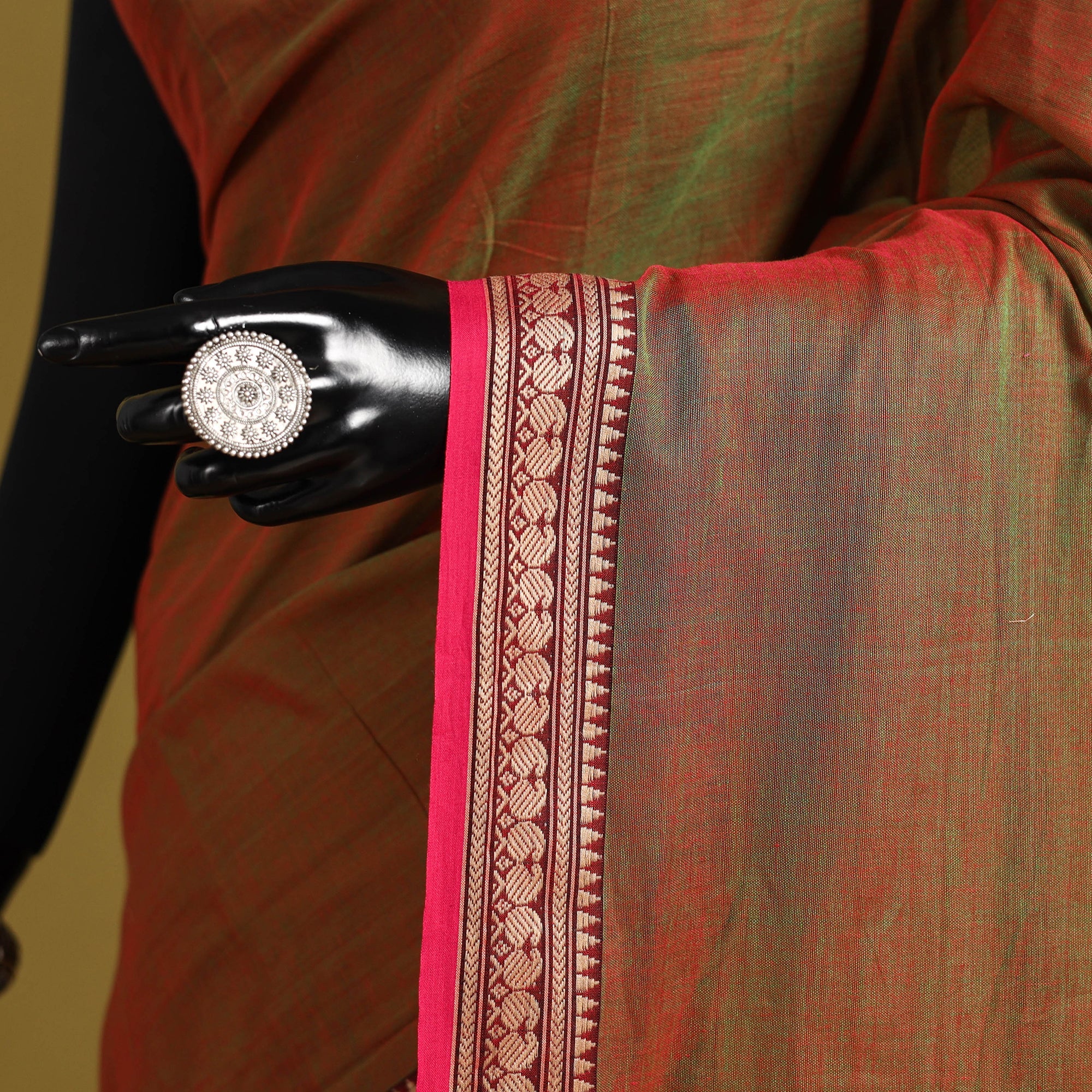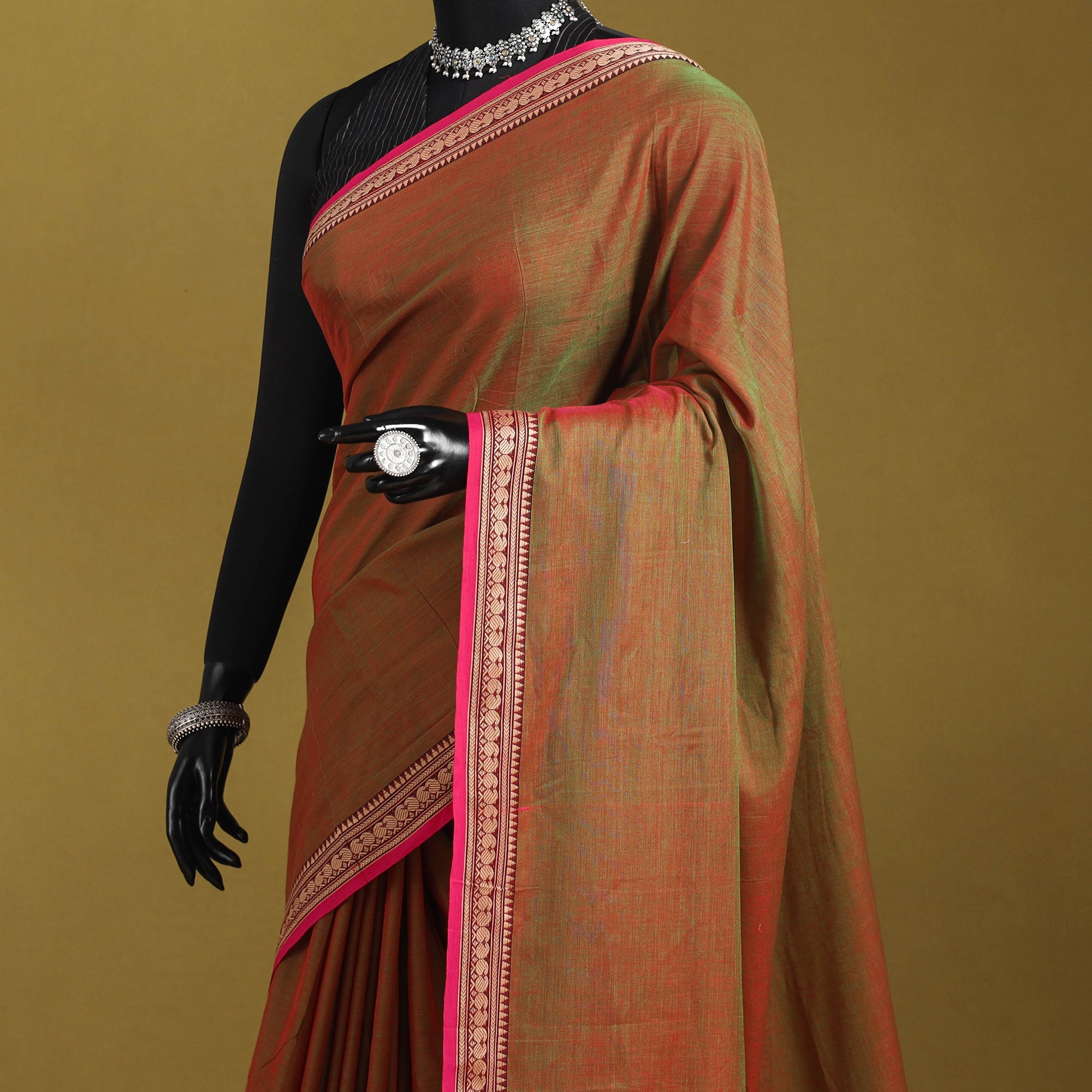 Embrace the traditional elegance of Karnataka with our dharwad cotton saree. This saree features a captivating woven border, meticulously crafted by the skilled weavers of Dharwad. The border showcases intricate motifs and patterns that reflect the rich cultural heritage of Karnataka. These exquisite details bring a sense of grace and sophistication, making the saree ideal for both formal occasions and festive celebrations.