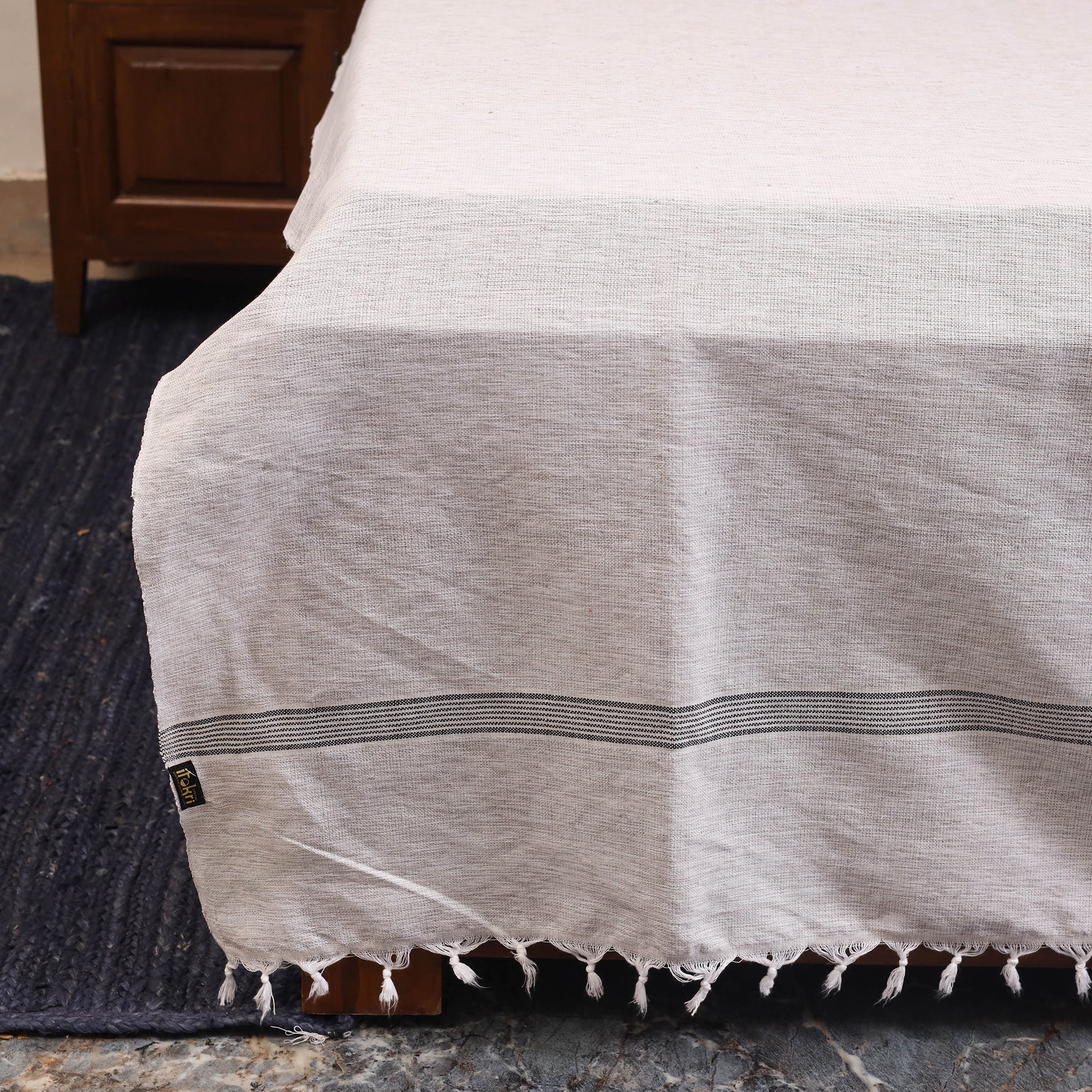 This beautifully woven white handloom bed sheet blends comfort with charm for your bedroom. Crafted from pure cotton, it ensures lasting durability and a gentle texture for restful sleep. The handloom weaving process gives each piece a unique character, reflecting the timeless traditions of skilled Indian artisans.