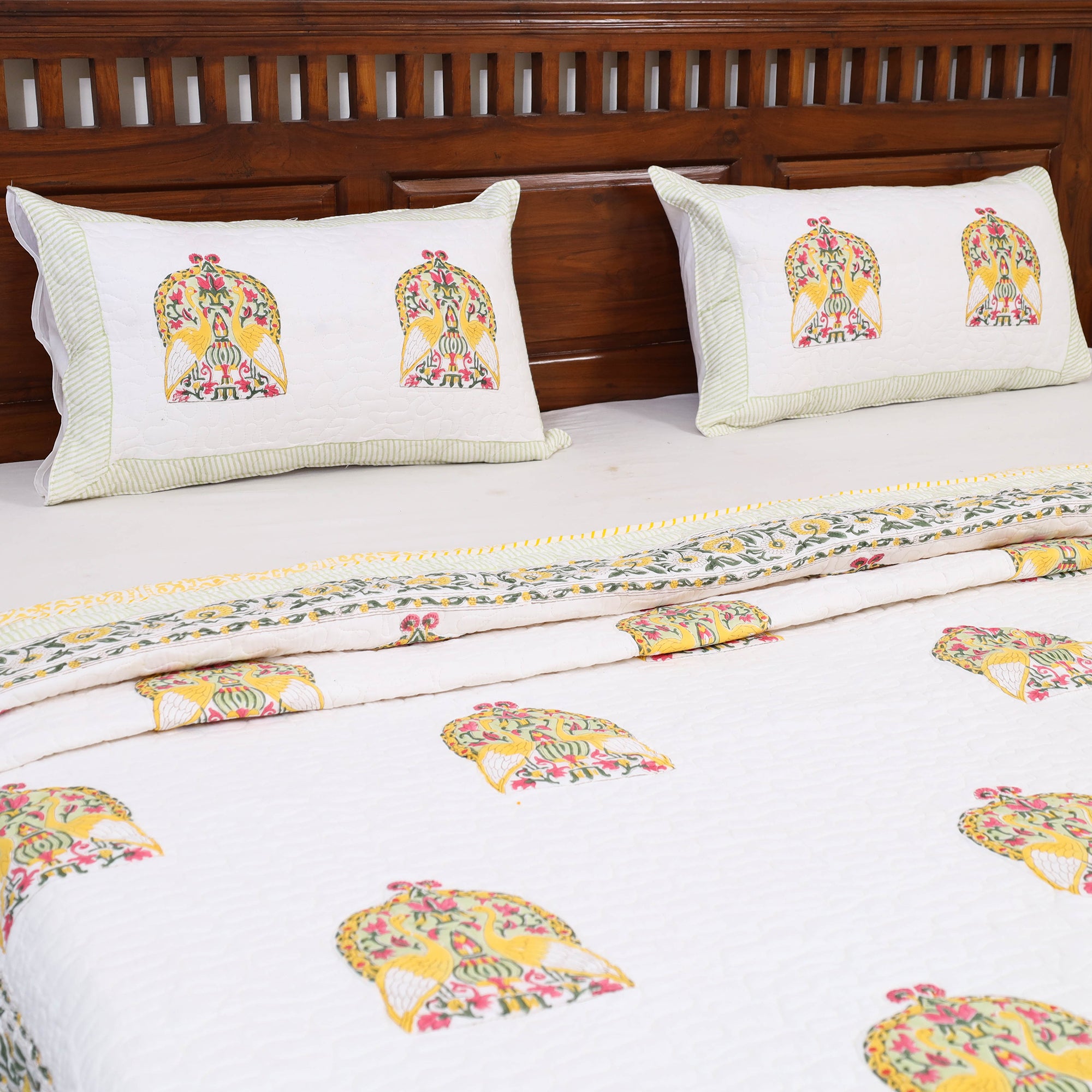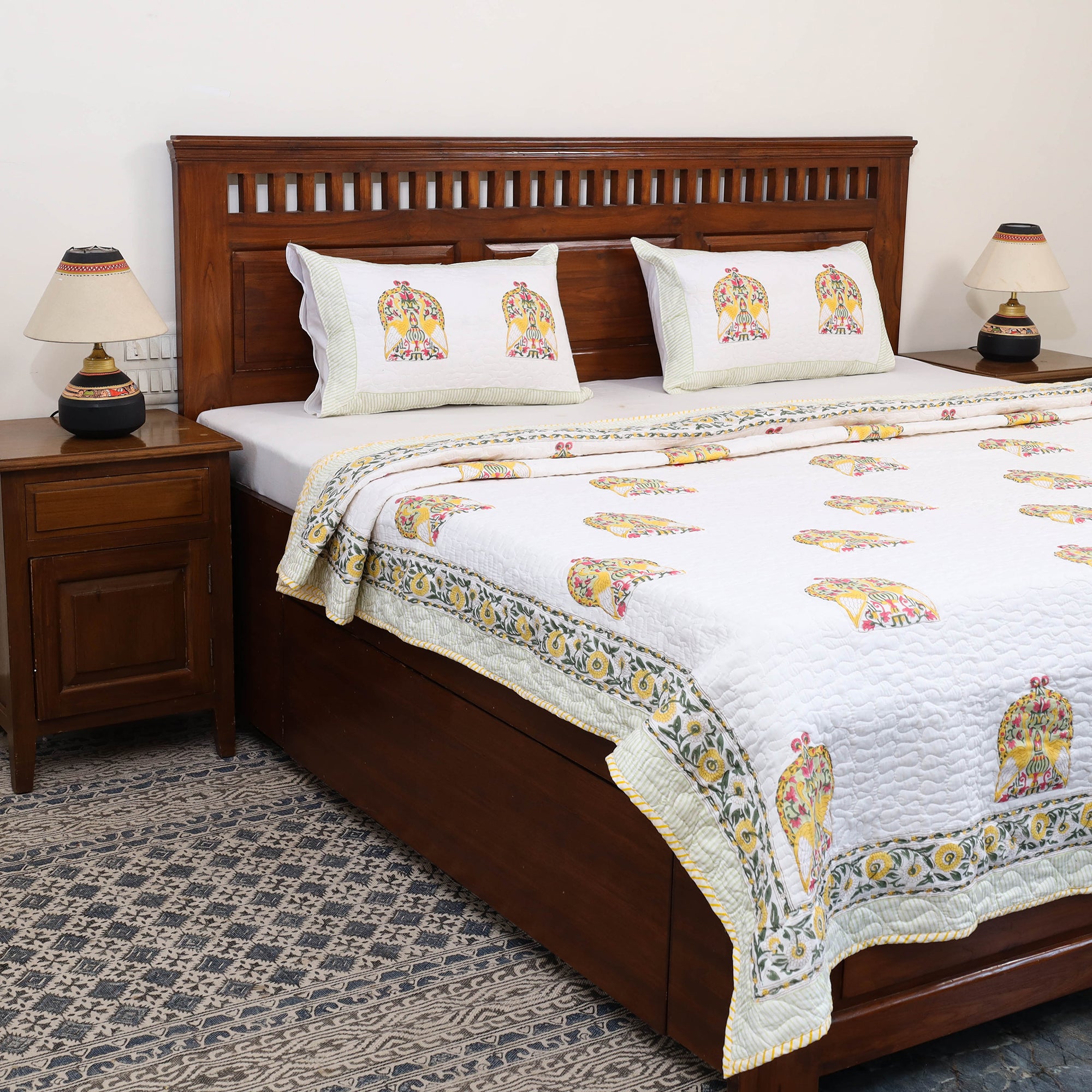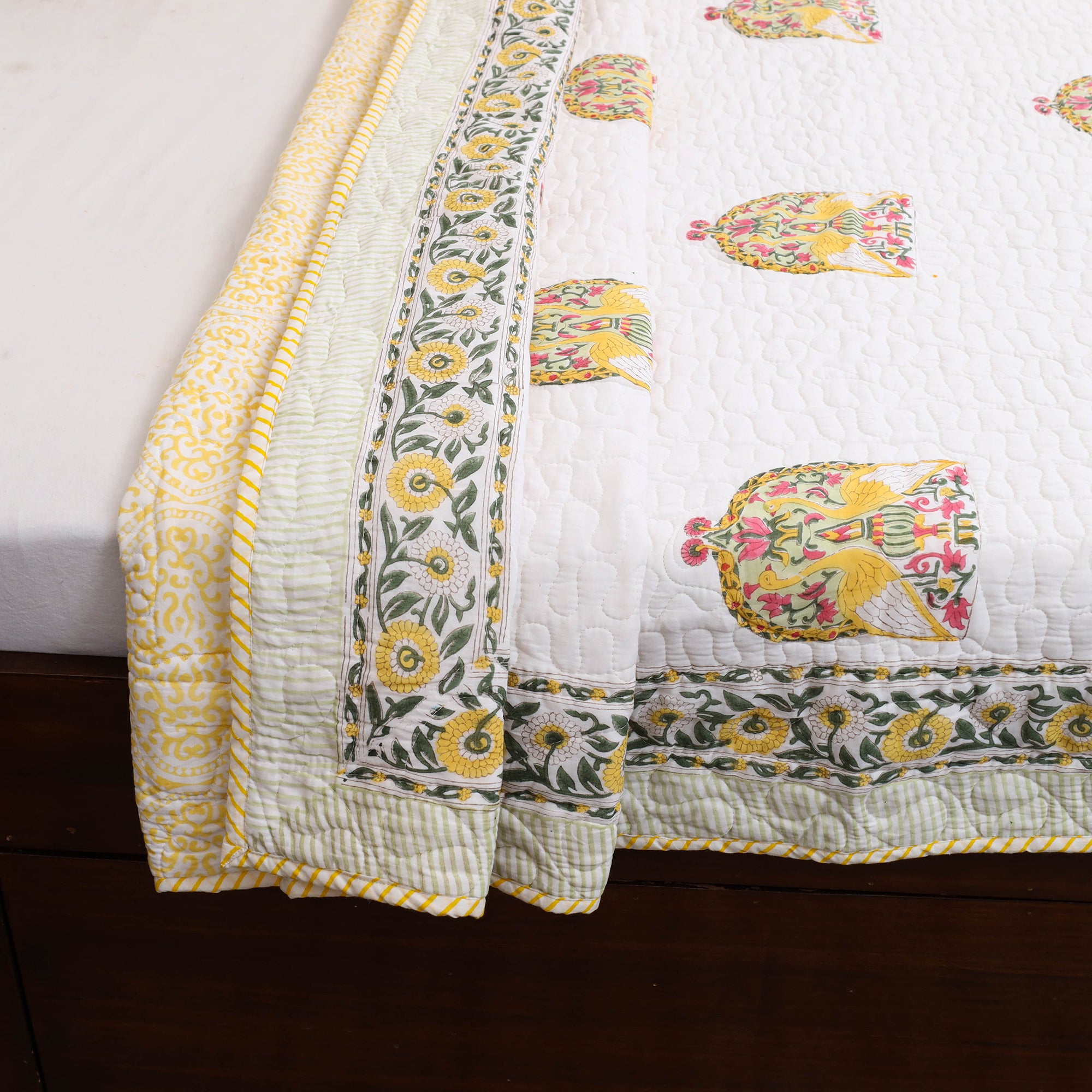 Wrap yourself in the unmatched softness of a handcrafted double - reversible sanganeri block print cotton quilt set. Designed with timeless block prints from Sanganer, Rajasthan, these quilts feature reversible designs. Made with VAT dyes, ensuring vibrant, fade-free patterns, they are lightweight yet cozy, perfect for chilly nights or everyday use. Each piece reflects India’s rich cultural heritage and artisan dedication. Shop now and bring an eco-friendly, artisanal touch to your home.