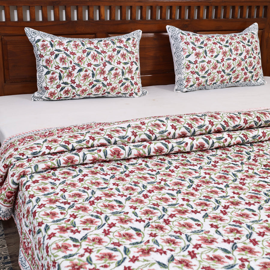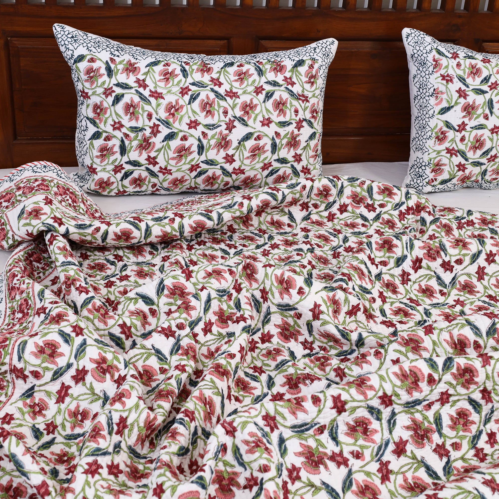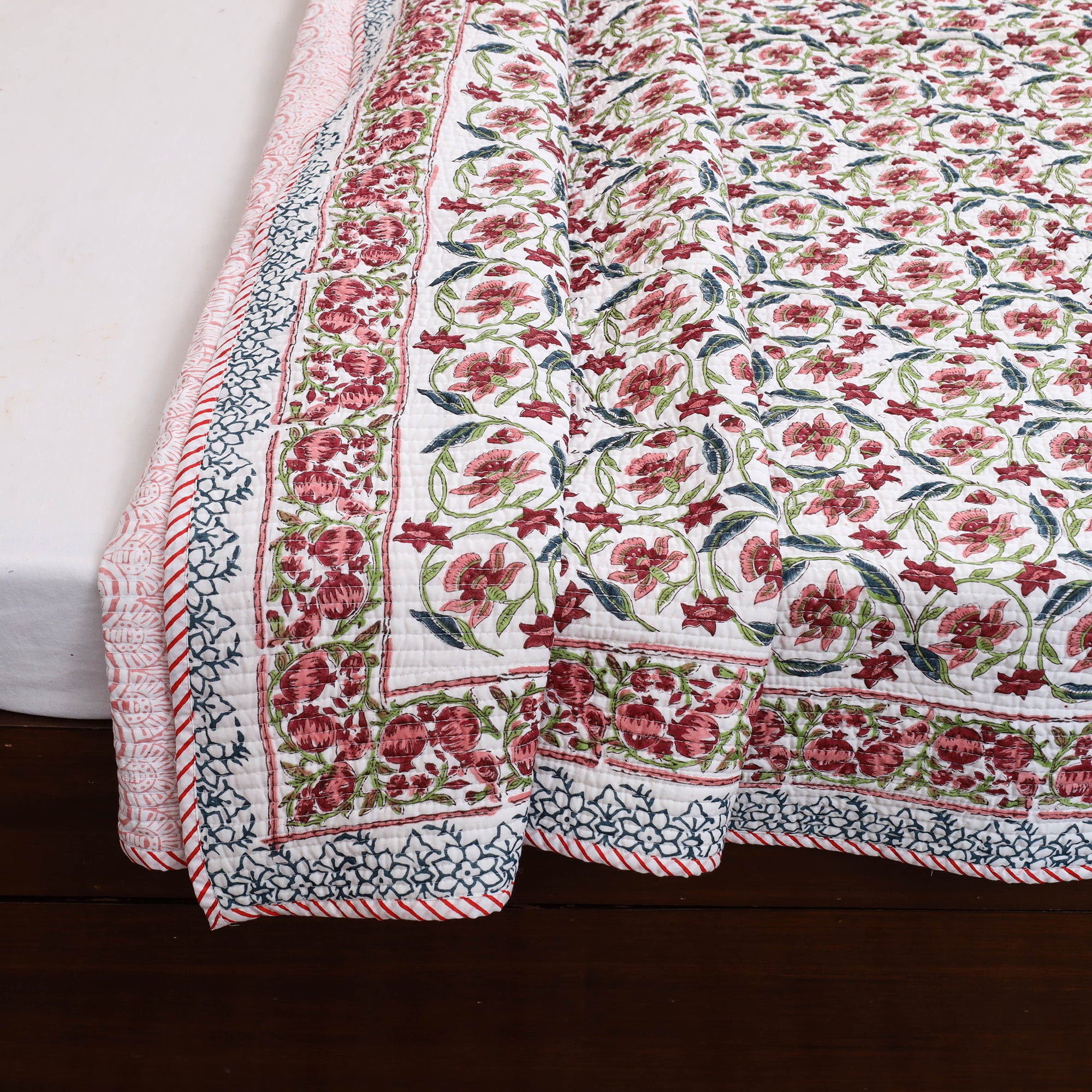 Wrap yourself in the unmatched softness of a handcrafted double - reversible sanganeri block print cotton quilt set. Designed with timeless block prints from Sanganer, Rajasthan, these quilts feature reversible designs. Made with VAT dyes, ensuring vibrant, fade-free patterns, they are lightweight yet cozy, perfect for chilly nights or everyday use. Each piece reflects India’s rich cultural heritage and artisan dedication. Shop now and bring an eco-friendly, artisanal touch to your home.