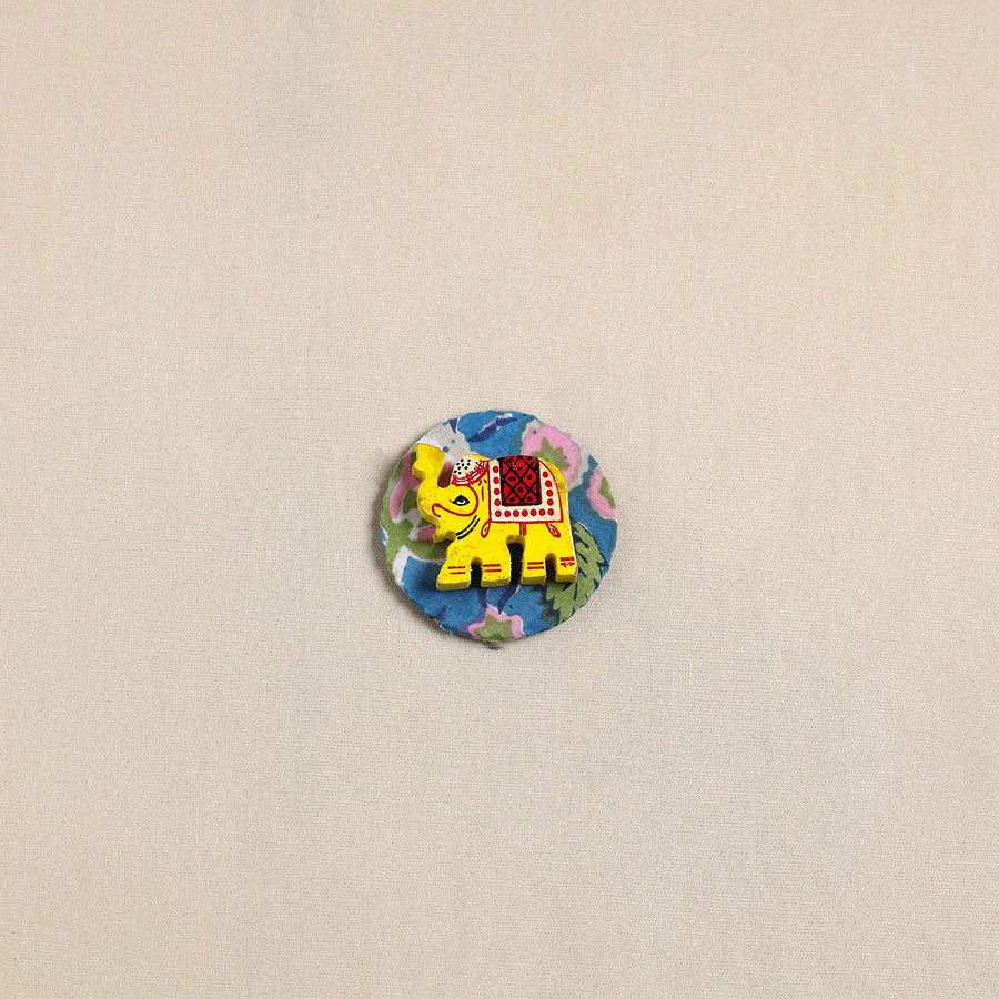 Enhance your space with this handmade fabart wooden magnet. Using durable wood and cotton fabric, each piece is a fusion of tradition and modern décor. Perfect for holding notes, photos, or adding a unique charm to your kitchen. Handmade with eco-friendly materials.