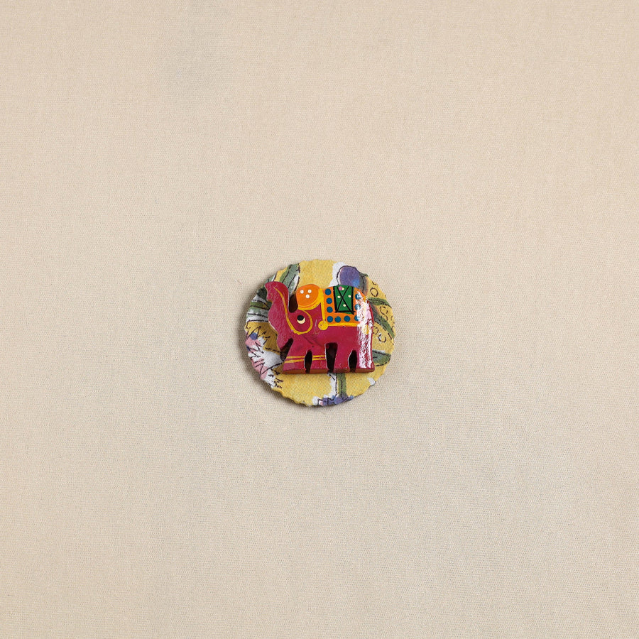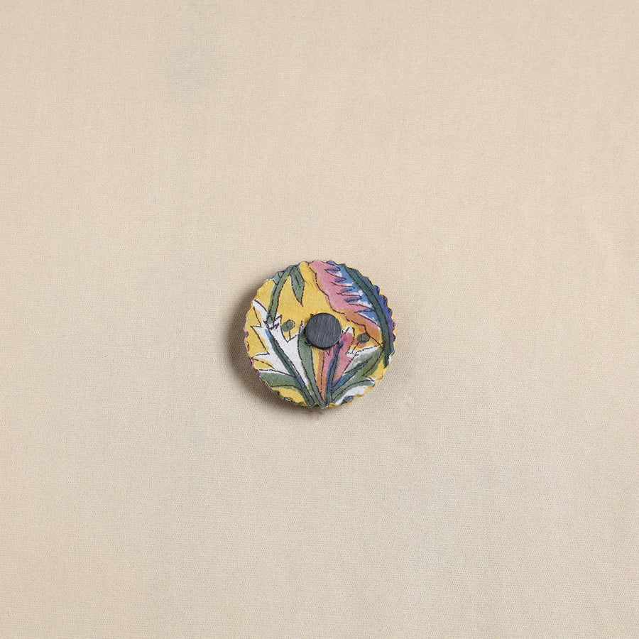 Enhance your space with this handmade fabart wooden magnet. Using durable wood and cotton fabric, each piece is a fusion of tradition and modern décor. Perfect for holding notes, photos, or adding a unique charm to your kitchen. Handmade with eco-friendly materials.