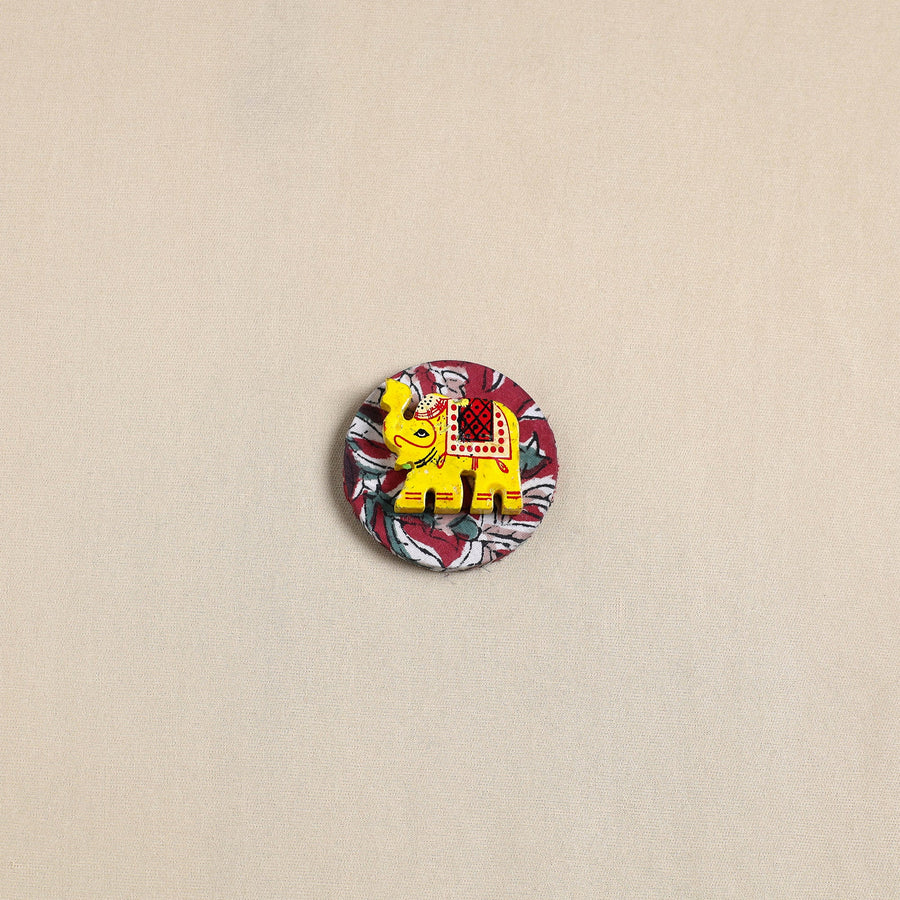 Enhance your space with this handmade fabart wooden magnet. Using durable wood and cotton fabric, each piece is a fusion of tradition and modern décor. Perfect for holding notes, photos, or adding a unique charm to your kitchen. Handmade with eco-friendly materials.