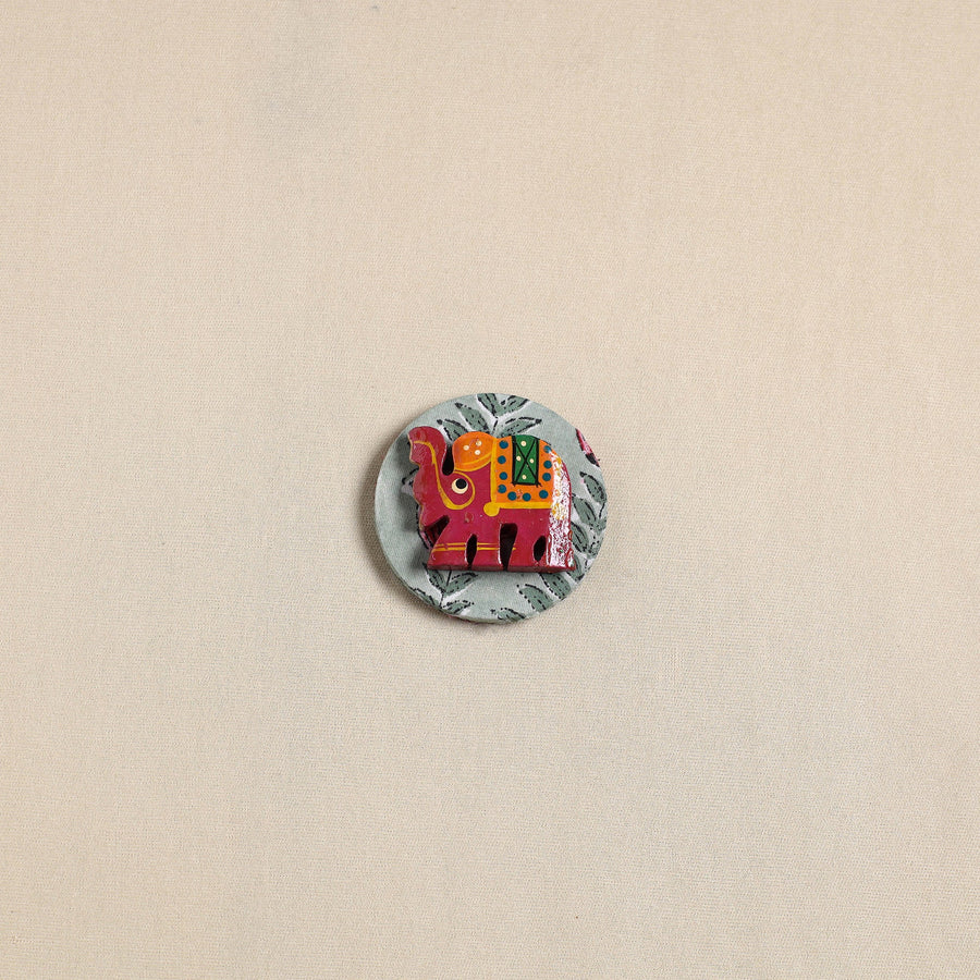 Enhance your space with this handmade fabart wooden magnet. Using durable wood and cotton fabric, each piece is a fusion of tradition and modern décor. Perfect for holding notes, photos, or adding a unique charm to your kitchen. Handmade with eco-friendly materials.