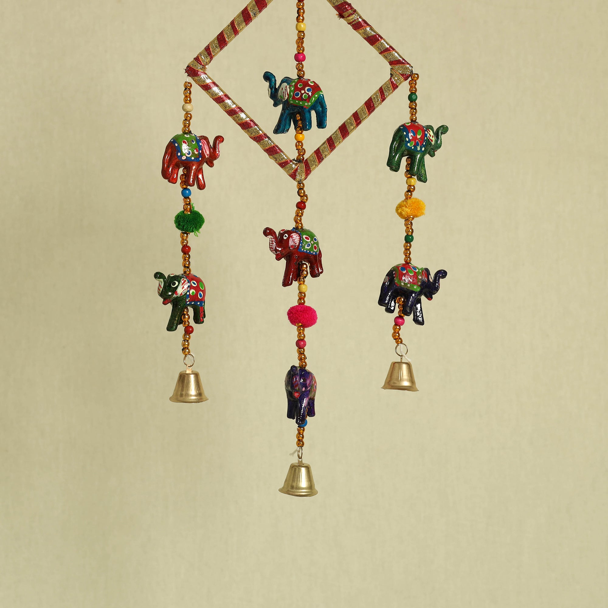 •  Elephant - Handpainted Wooden Decorative Bell Hanging