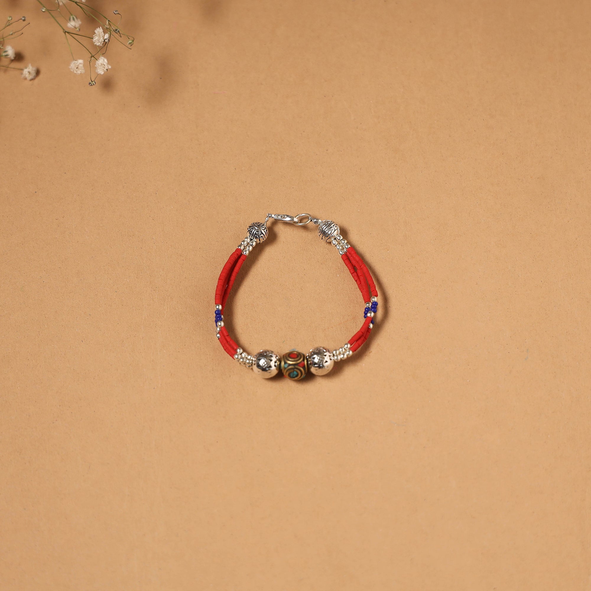 | Material | These ethnic tribal tibetan bracelet from Himalayas, showcase the beauty of semi precious stones like turquoise and lapis lazuli intricately combined with beads, metal and alloy accents. Handmade by artisans the design reflects the essence of tibetan craftsmanship and culture. |