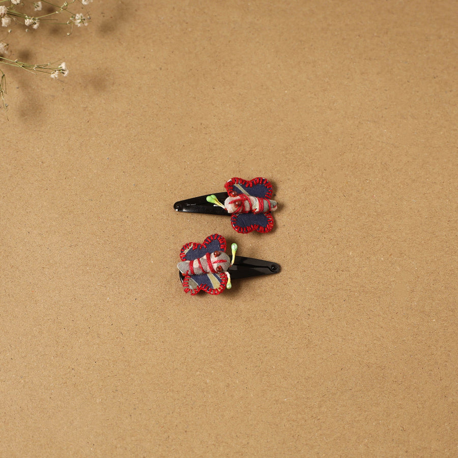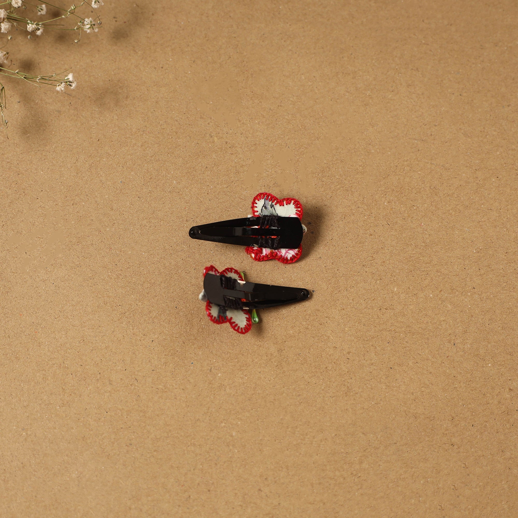 Fab artwork tik-tak hair clip for kids (set of 2) is made from recycled fabric scraps and finished with thread embroidery and beads. Handcrafted by artisan Shanti Paswan (Jan sandesh), these lightweight clips offer a secure grip and playful design, making them ideal for comfortable everyday wear.