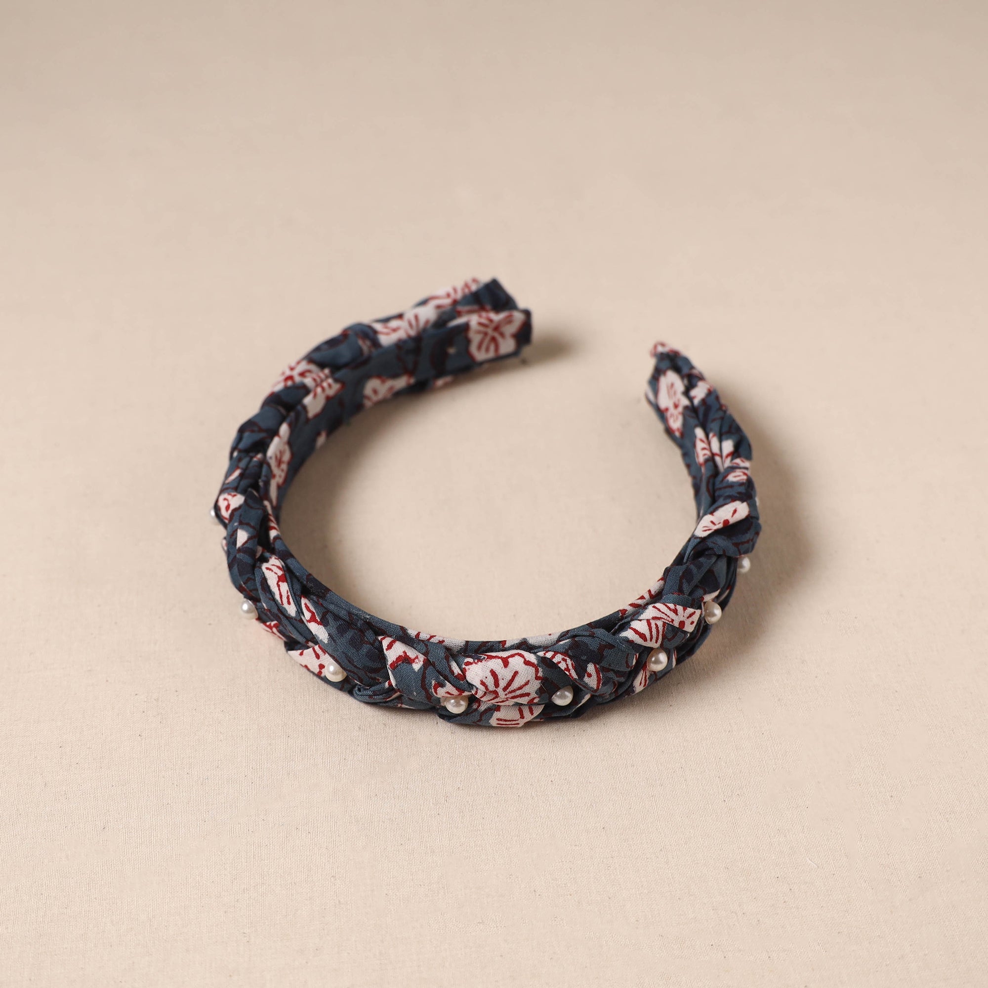 Hair band is crafted from cotton fabric. The hand-braided design with bead work gives it a stylish look and a comfortable fit. Handmade by artisans, it can be worn for any occasion and is also suitable for daily activities, helping keep hair in place during the day.