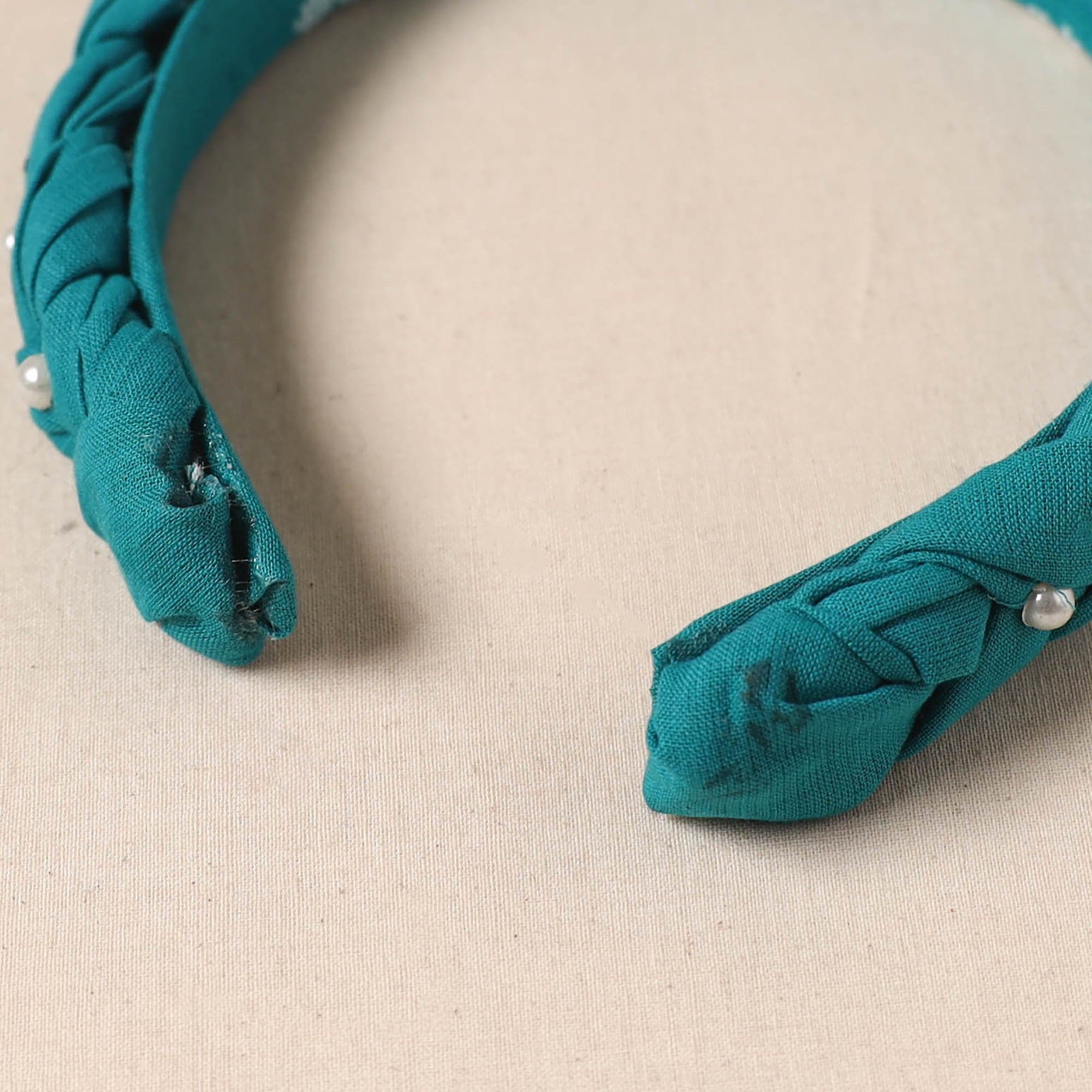 Hair band is crafted from cotton fabric. The hand-braided design with bead work gives it a stylish look and a comfortable fit. Handmade by artisans, it can be worn for any occasion and is also suitable for daily activities, helping keep hair in place during the day.