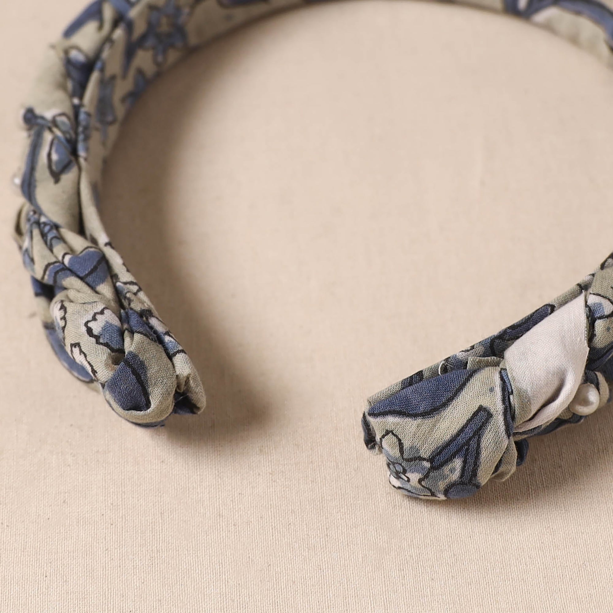Grey hair band is crafted from cotton fabric. The hand-braided design with bead work gives it a stylish look and a comfortable fit. Handmade by artisans, it can be worn for any occasion and is also suitable for daily activities, helping keep hair in place during the day.