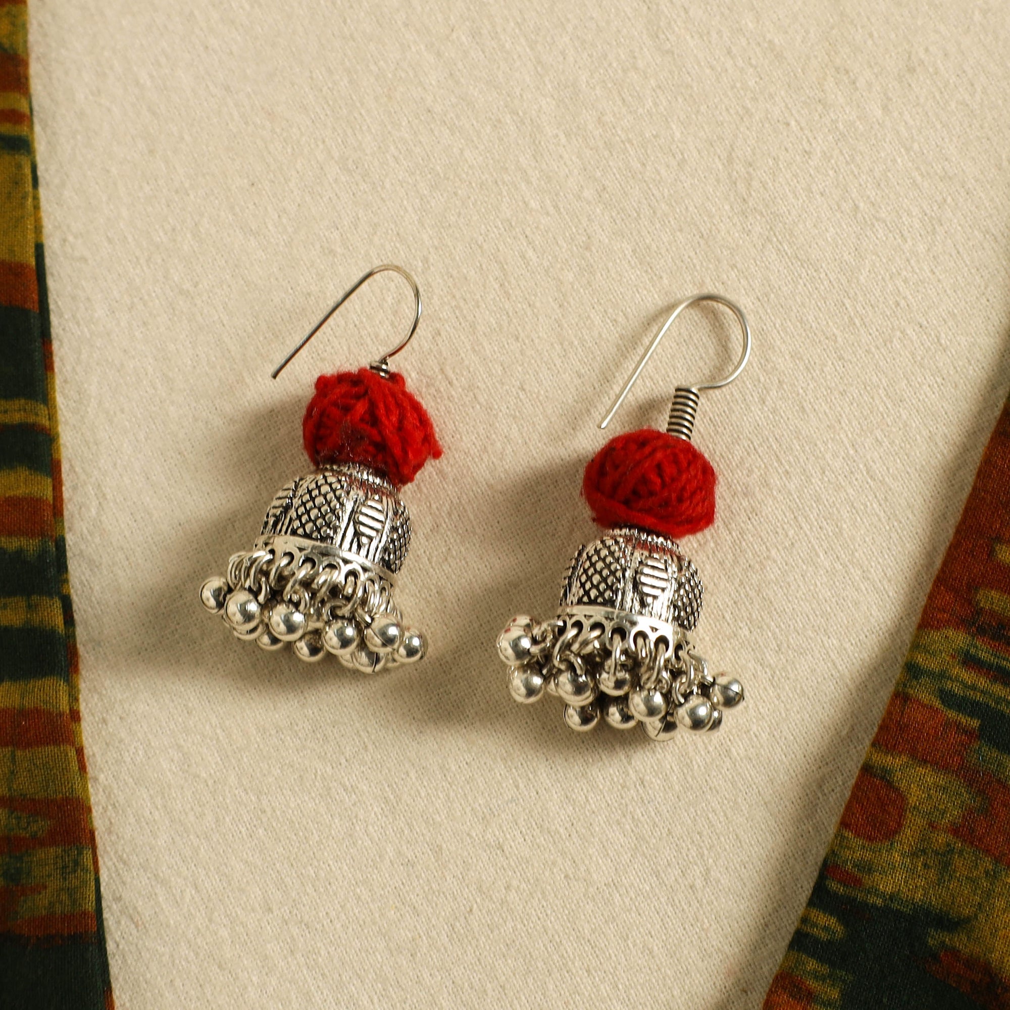 Elevate your ethnic charm with this multicolor handcrafted fabric necklace set. Featuring a german silver pendant that brings an artistic flair, the necklace pairs beautifully
