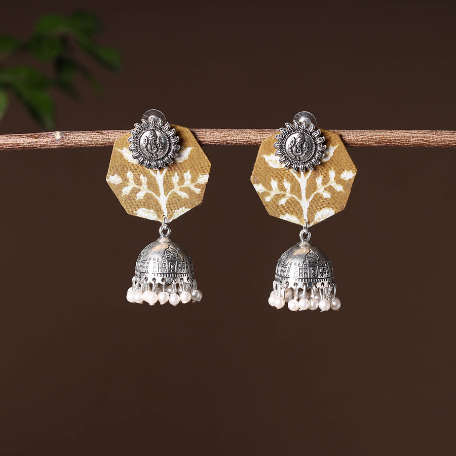 Enhance your everyday style with our brown handcrafted fabart GS jhumki earrings. Featuring intricate beadwork and fabric detailing, they make the perfect accessory for both casual and festive outfits. Explore our collection and adorn yourself with cultural elegance today.