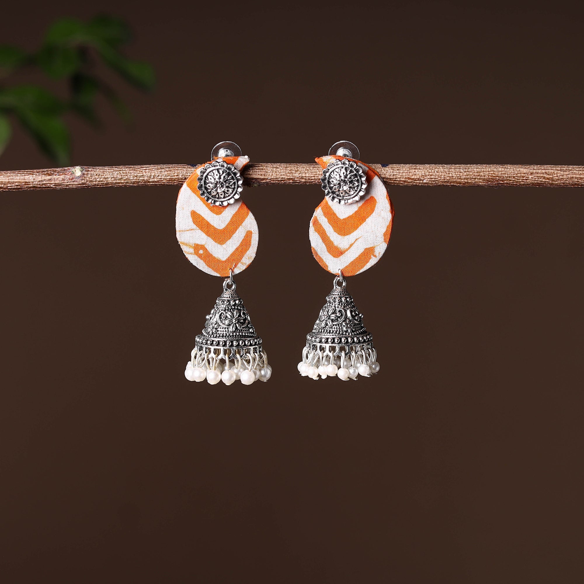 Enhance your everyday style with our orange handcrafted fabart GS jhumki earrings. Featuring intricate beadwork and fabric detailing, they make the perfect accessory for both casual and festive outfits. Explore our collection and adorn yourself with cultural elegance today.