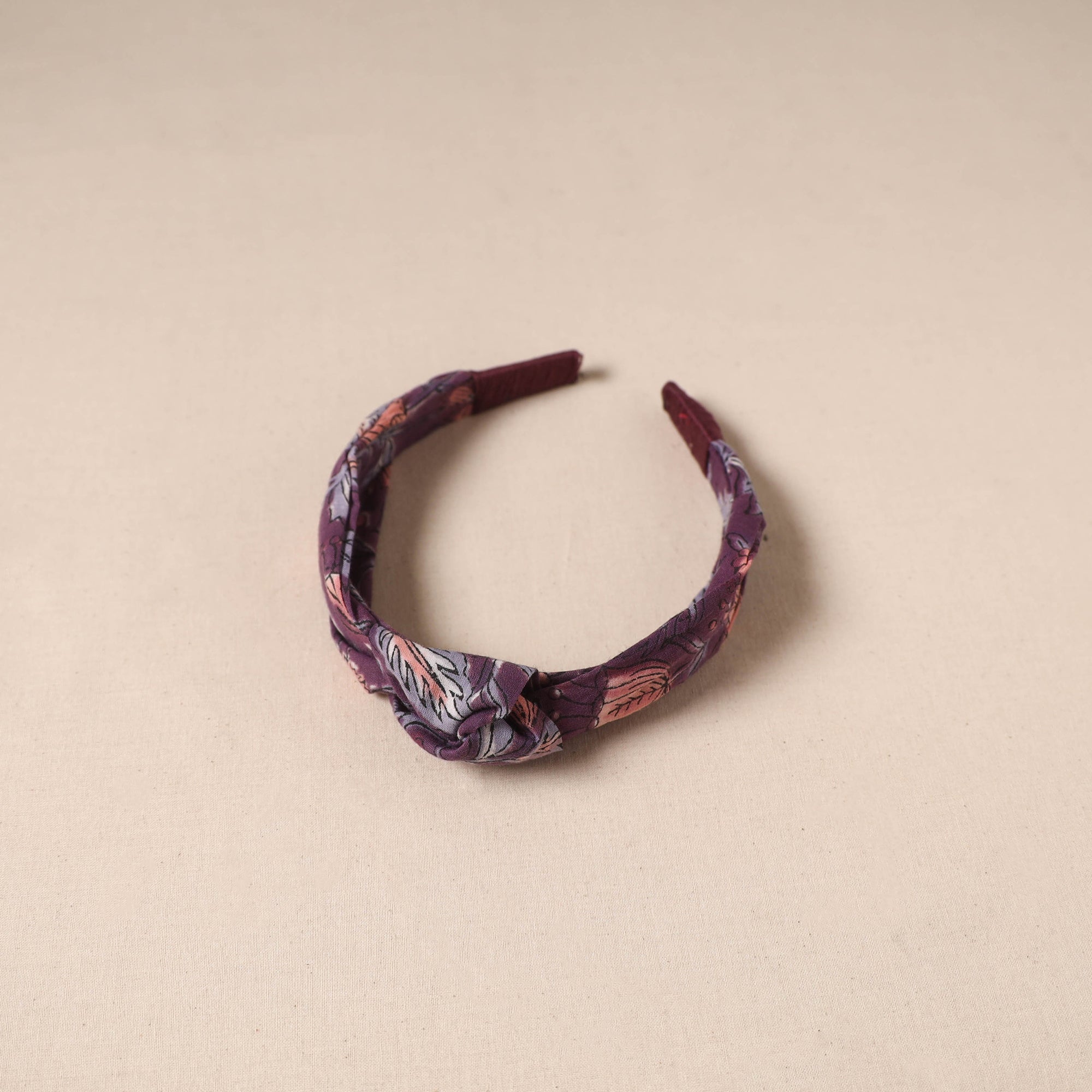Purple hair band is crafted from cotton fabric. The knotted design on top gives it a stylish look and a comfortable fit. Handmade by artisans, it can be worn for any occasion and is also suitable for daily activities, helping keep hair in place during the day.
