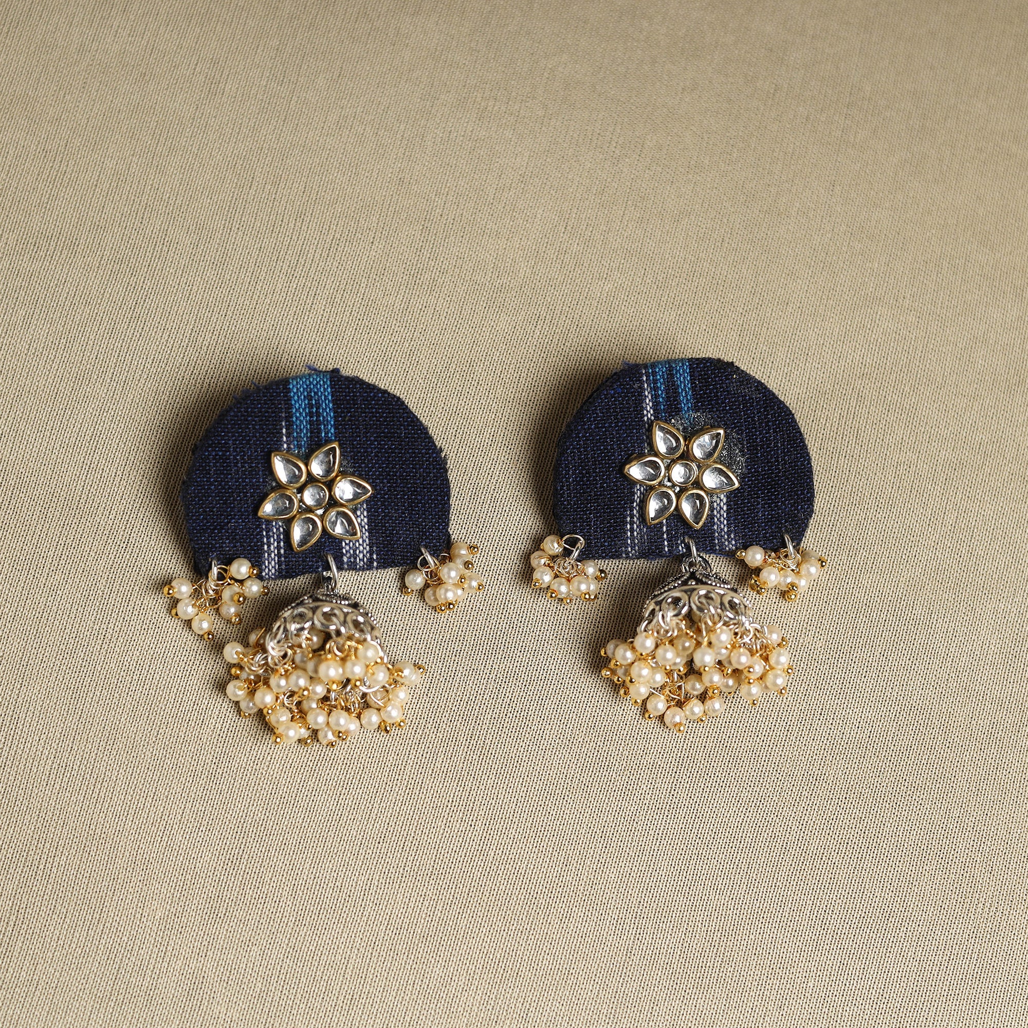 Complete your look with this black handmade fabart necklace set. Made using thread, fabric, pearls, and stones, the set comes with matching earrings that also include german silver elements. Inspired by traditional jewellery styles, it features detailed craftsmanship that works well with festive wear or casual outfits.