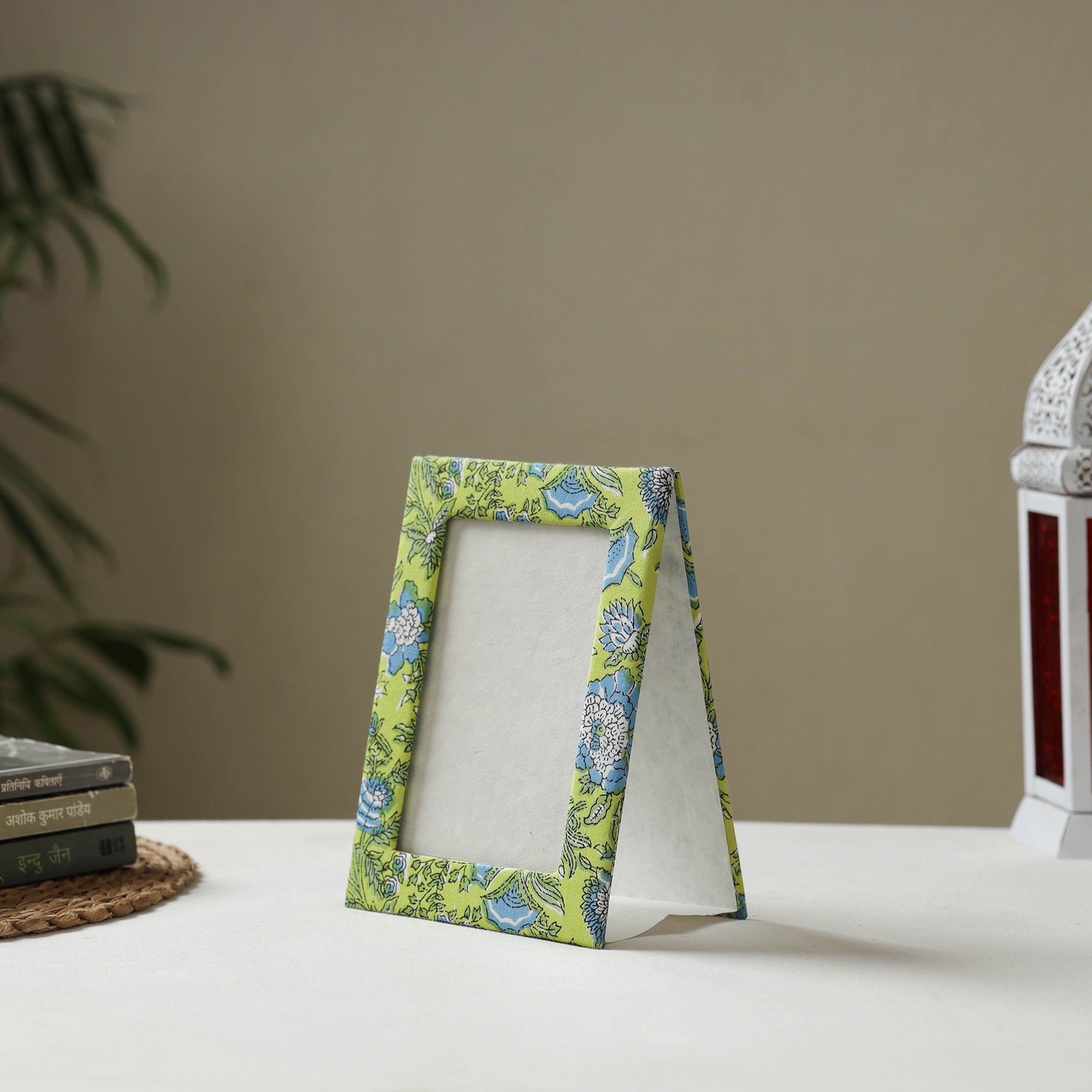 Put your favorite photograph in this green fabric-embellished handmade photo frame. The frame is handcrafted using sturdy hardboard and protected by an acrylic glass sheet. Its beautiful fabric detailing adds an artisanal charm, making it perfect for any home decor or gifting.