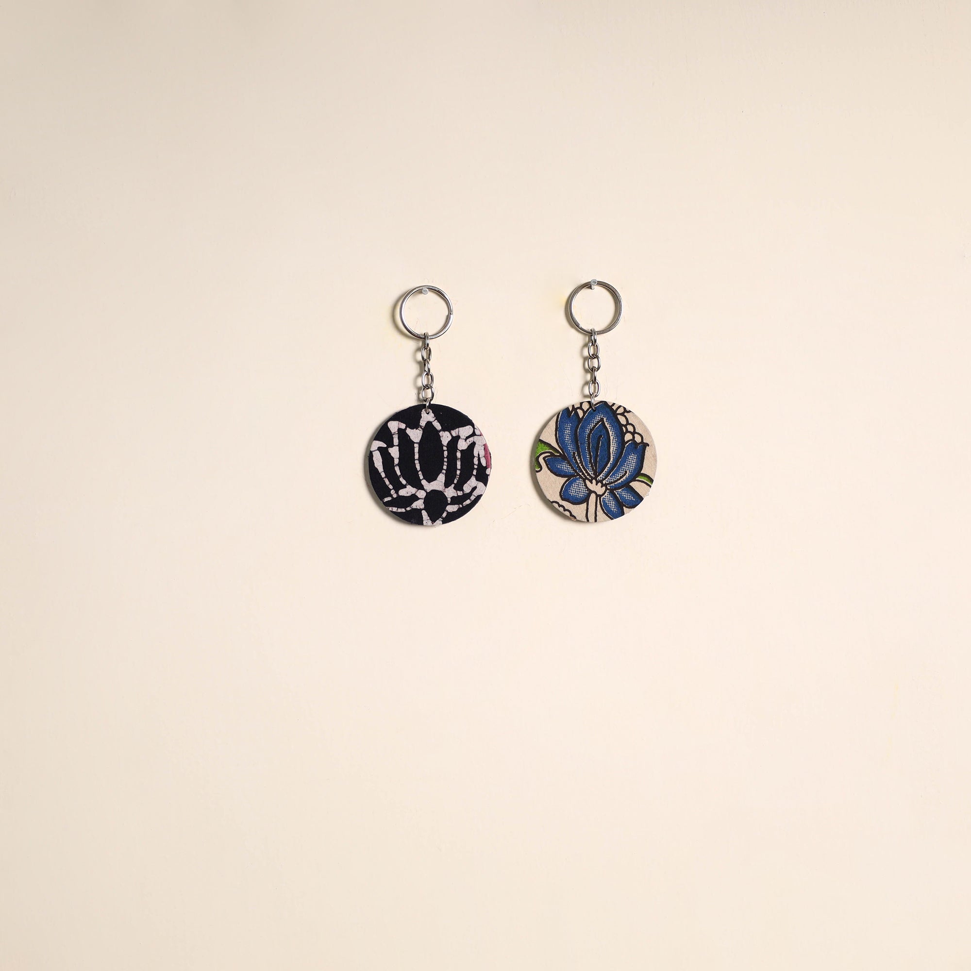 Multicolor - Fabric-Embellished Wood Keychain (Set of 2) 44