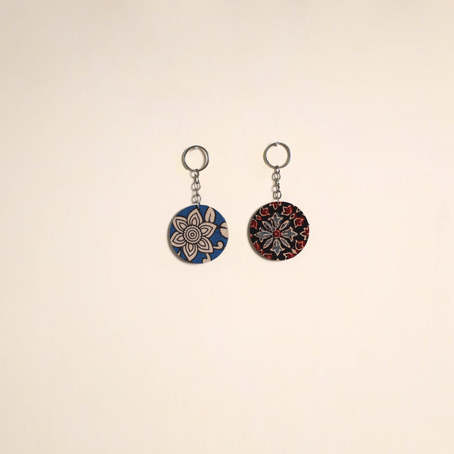 Multicolor - Fabric-Embellished Wood Keychain (Set of 2) 50