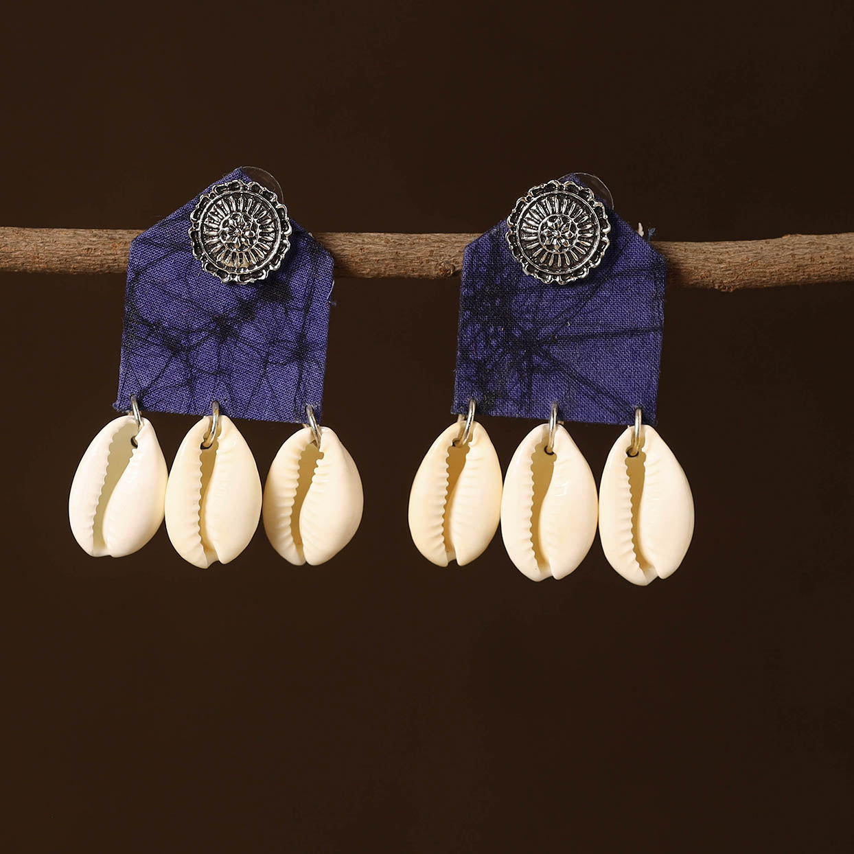 Elevate your look with our blue fabart shell work earrings. Intricately designed with fabric, shell work and german silver, this earrings exudes sophistication. This versatile earrings combine classic design with a modern twist, perfect for both daily and special occasions.