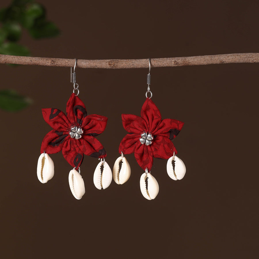 Elevate your style with our red fabart phool kali shell earrings, crafted with care to blend tradition and modern charm. Made from intricate fabric designs and shells, these beautiful earrings for women add elegance to any outfit. Perfect for both casual and festive looks, they showcase the artistry of skilled artisans.