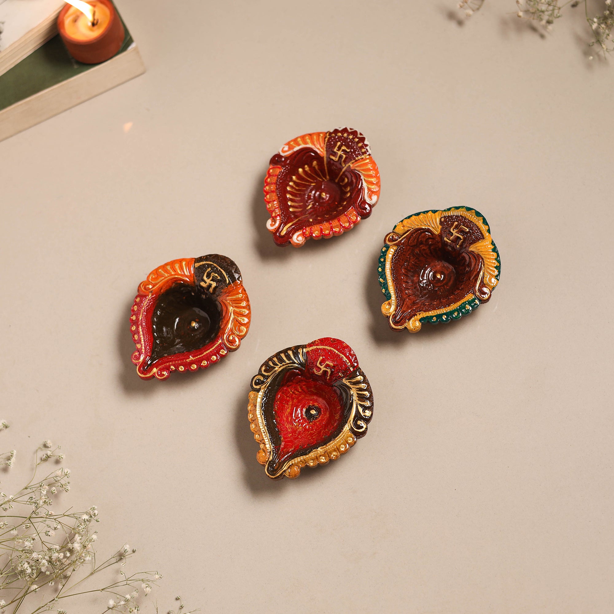 • Festive handpainted clay diya (set of 4) 15 - handcrafted
