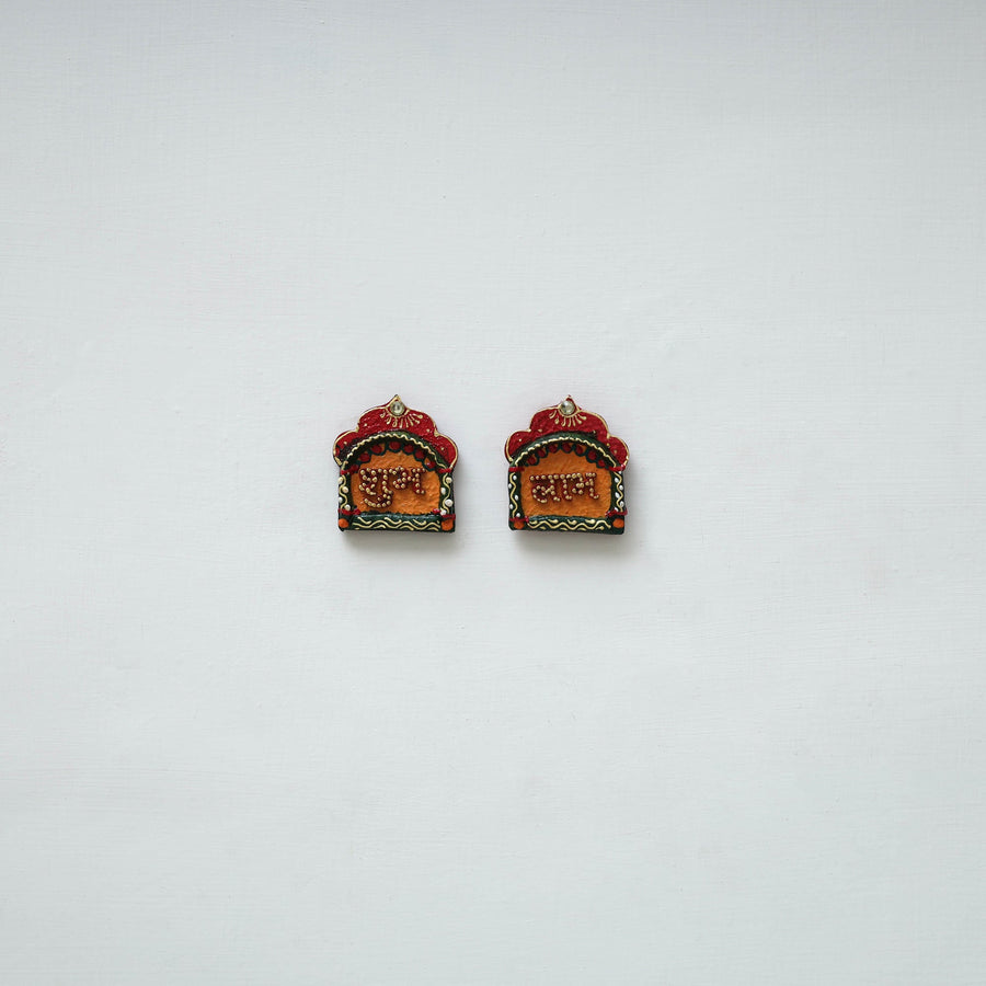 | Material | This festive wooden shubh labh is beautifully hand-painted in bright acrylic colors with fine patterns and sparkling kundan work. Made on durable wood, it features a sturdy double tape at the back for easy placement. A perfect choice to adorn your home entrance, it adds a graceful and welcoming charm to Diwali and special celebrations. |