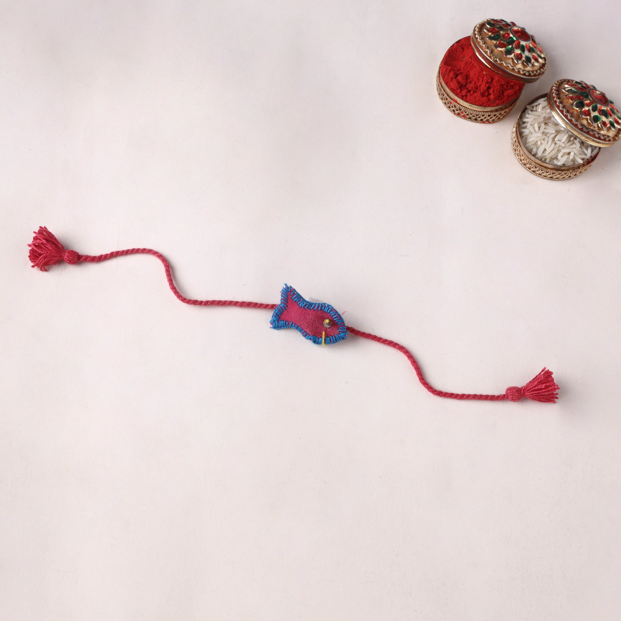 | Material | Thread work kids rakhi handcrafted for the very special khatta meetha bond between brother and sister. This rakhi features hand embroidery done with thread, combined with bead detailing. This rakhi comes from Jan Sandesh, where craftswomen have created each design themselves in playful shapes like birds, flowers, butterflies and ladybirds, making every piece unique, using upcycled waste fabric. You can reuse the rakhi after the festival by turning it into a brooch. It comes with a potli that has a handmade rajasthani puppet attached, which can also be removed and used as a keychain. |