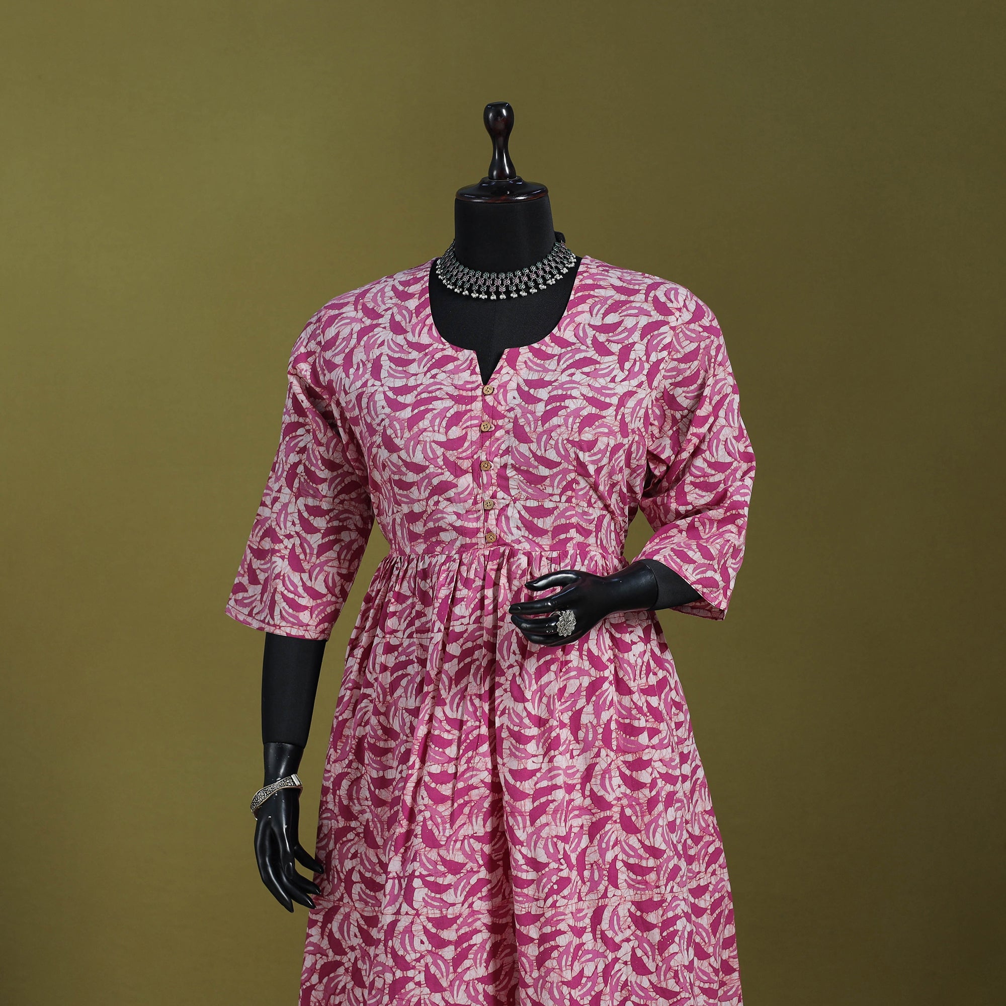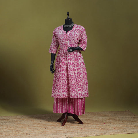 Step into elegance with this pink flared cotton hand batik block print suit set. Crafted using the traditional wax-resist dyeing technique, each pattern showcases a unique artistic charm. The breathable cotton fabric ensures all-day comfort, while the flared kurta and matching palazzo with a flexible waistband offer a graceful fit. Designed to make every moment feel a little more special and stylish, this outfit beautifully blends cultural heritage with modern sophistication.