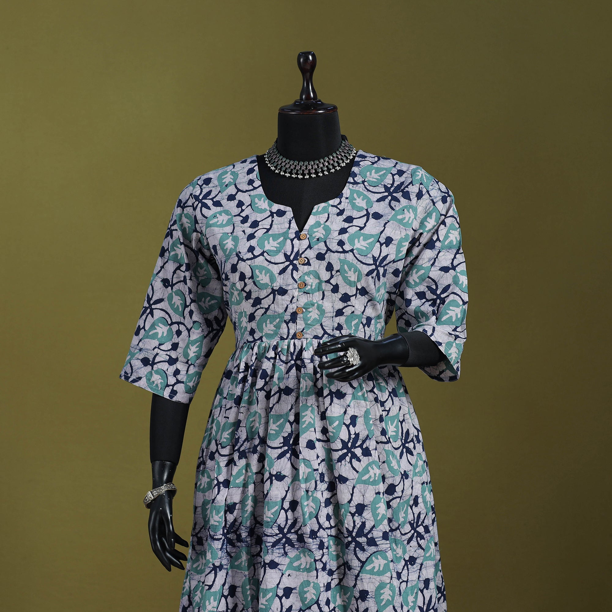 Step into elegance with this blue flared cotton hand batik block print suit set. Crafted using the traditional wax-resist dyeing technique, each pattern showcases a unique artistic charm. The breathable cotton fabric ensures all-day comfort, while the flared kurta and matching palazzo with a flexible waistband offer a graceful fit. Designed to make every moment feel a little more special and stylish, this outfit beautifully blends cultural heritage with modern sophistication.