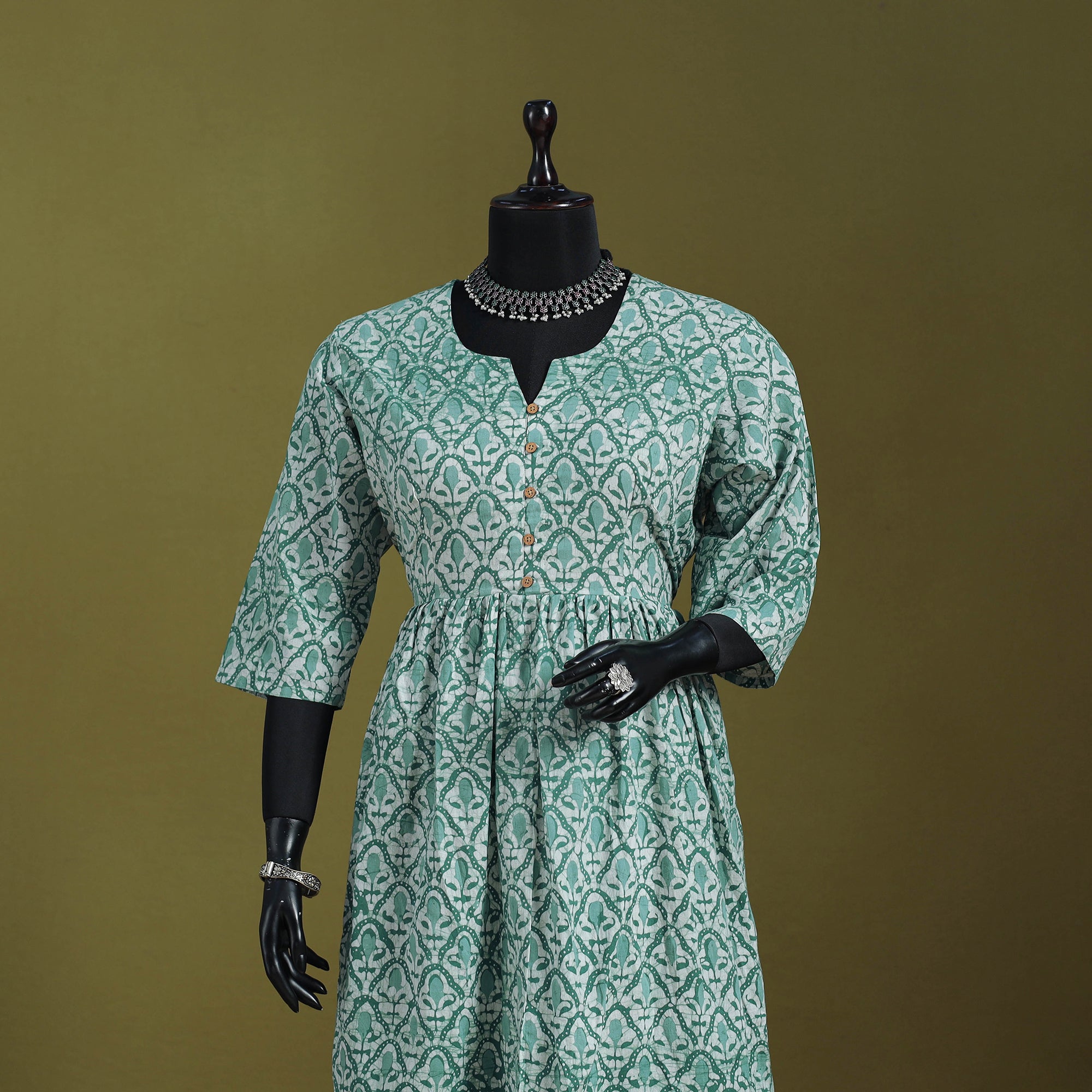 Step into elegance with this green flared cotton hand batik block print suit set. Crafted using the traditional wax-resist dyeing technique, each pattern showcases a unique artistic charm. The breathable cotton fabric ensures all-day comfort, while the flared kurta and matching palazzo with a flexible waistband offer a graceful fit. Designed to make every moment feel a little more special and stylish, this outfit beautifully blends cultural heritage with modern sophistication.