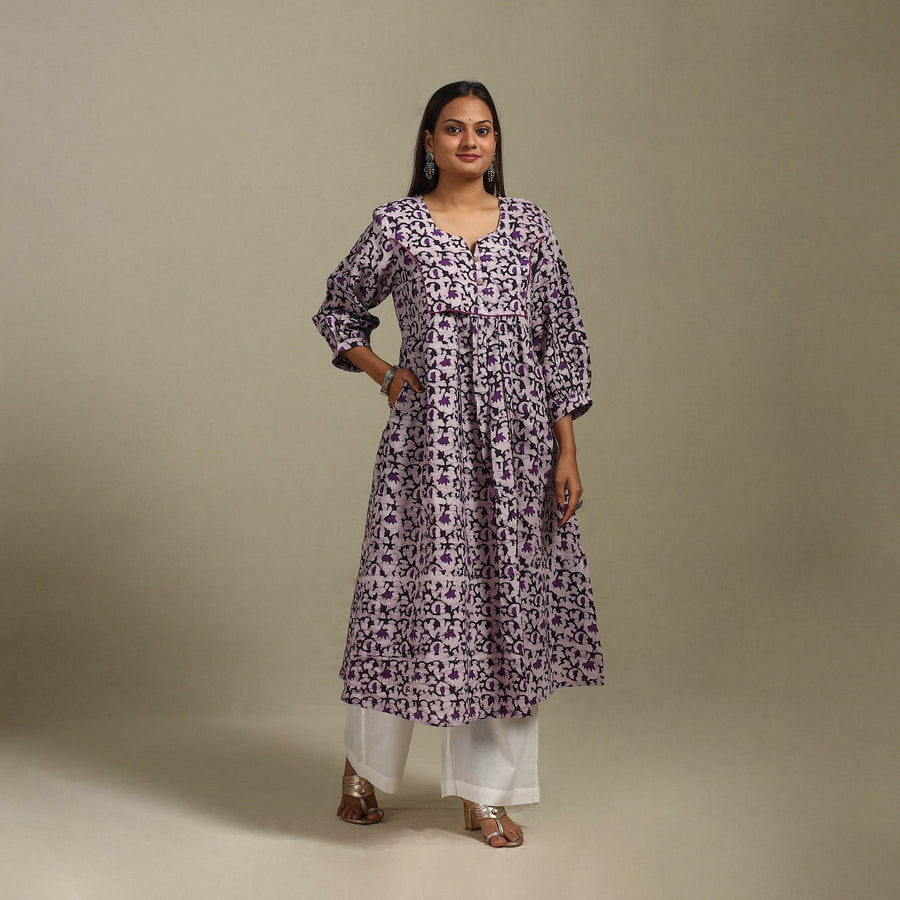 Blue - Cotton Hand Block Batik Print A-Line Kurta for women 21