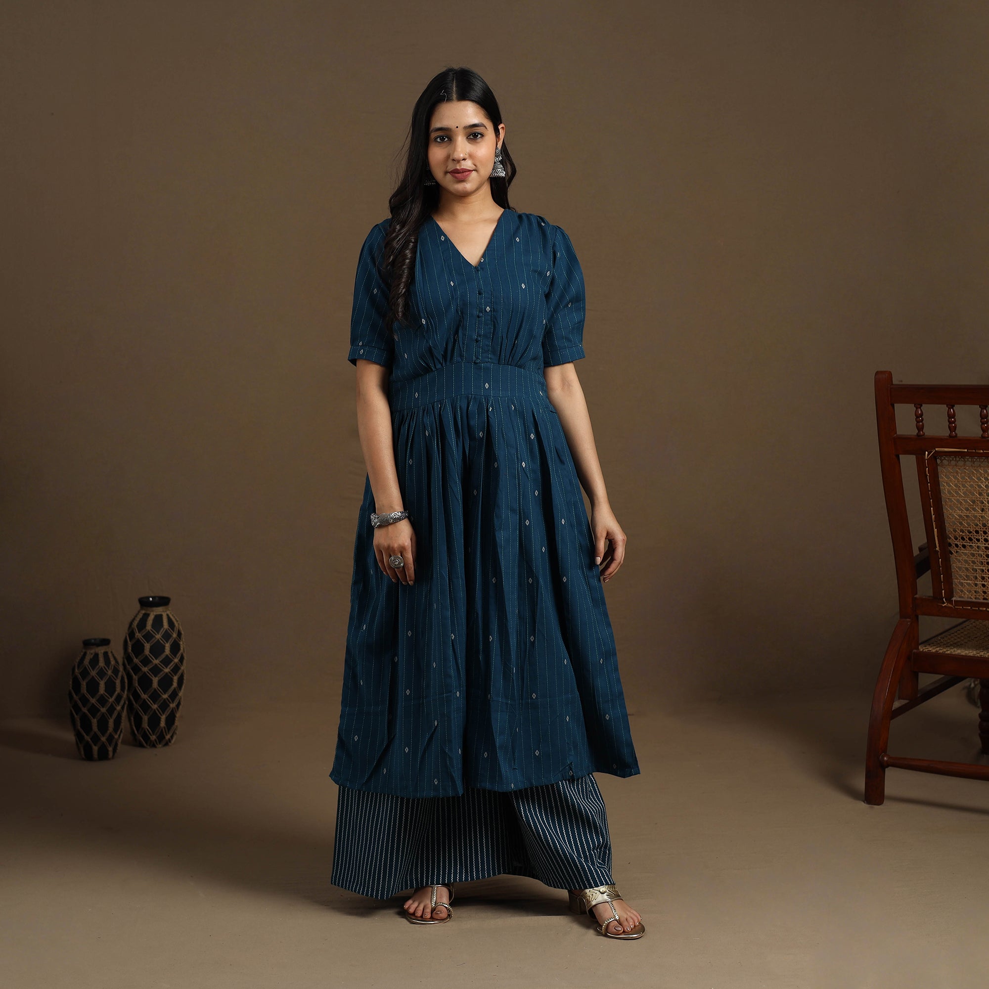 A-Line Cotton Hand Embroidered Jacquard Kurta for women 12