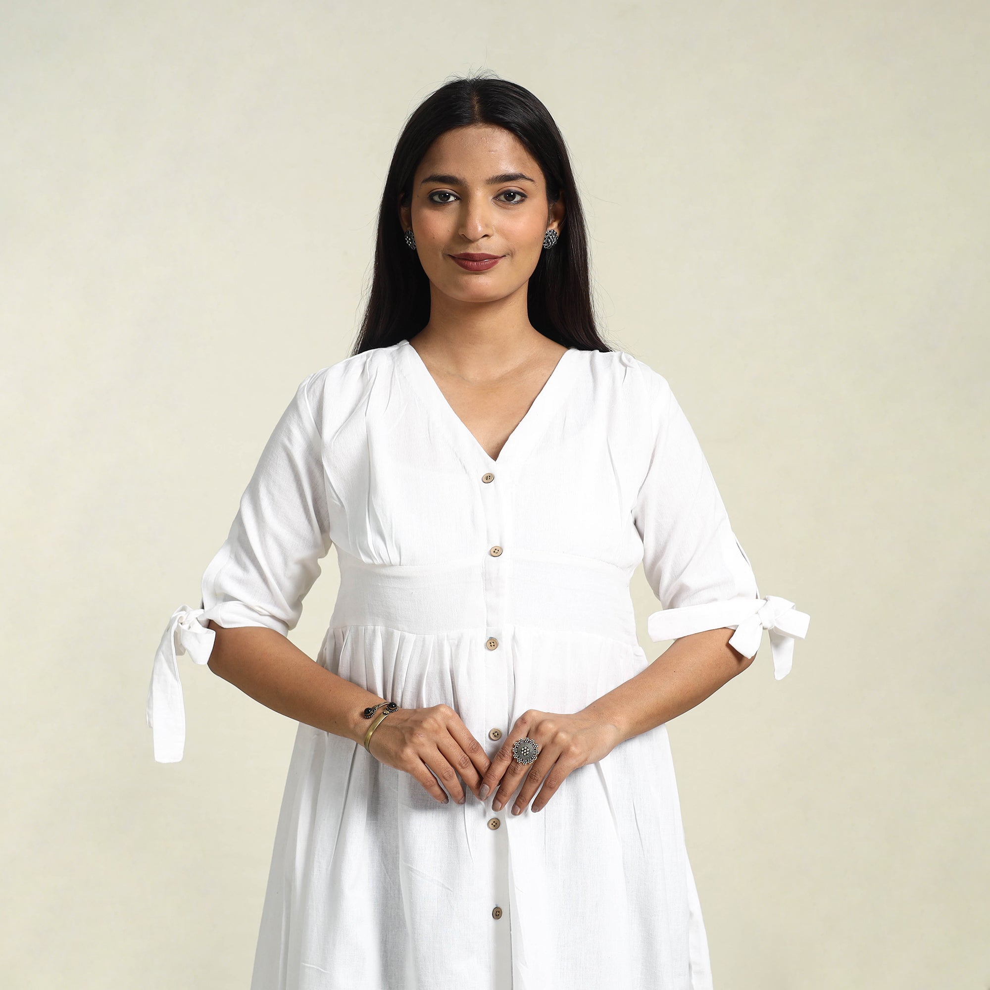 Step into effortless style with this white plain button-down dress made from soft flex cotton. Lightweight and breathable, it keeps you comfortable all day long. Ideal for casual gatherings or daily wear, this dress brings together timeless elegance and contemporary ease.